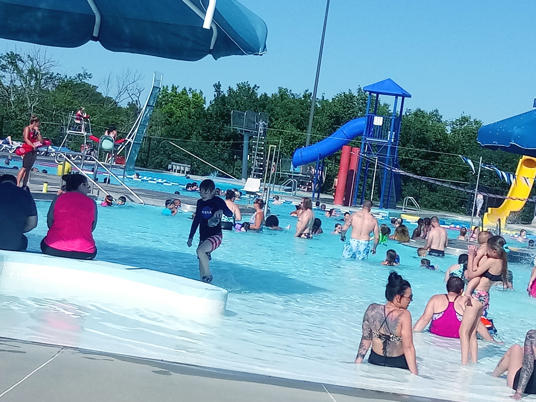 It I could leave no stars I would. I drove 45 min to this pool to enjoy a pool day with my sister and nephews and was utterly disgusted with how I was treated and harassed the hour and 20 I was there. The lifeguards rules were inconsistent and so nit picky. I had the whistles blown at me 5 different times. I have a 1 year old and I was on his heels the whole time not one time was it a safety issue (imo) that was necessary for a whistle being blown at me or my child. I feel like I was singled out. There were other people that needed attention and myself and my son was not one. After the 5th time of being embarrassed I asked what I was allowed to do and was told I could leave. Spoke to the mgr about my experience and didn’t feel much sympathy. I packed up my things and we left never to return again. Pool is nice tho.