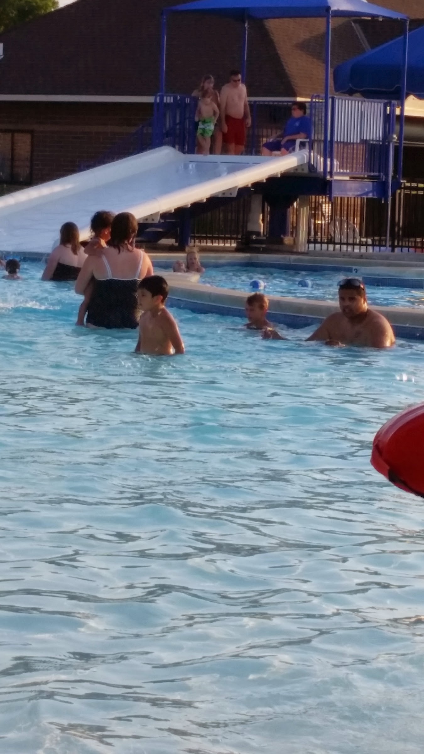 Very nice facility with lots of activities 2 large slides,1 small, a shallow pool with playground style climbing and slides, large pool for swimming and diving, and a concession stand.