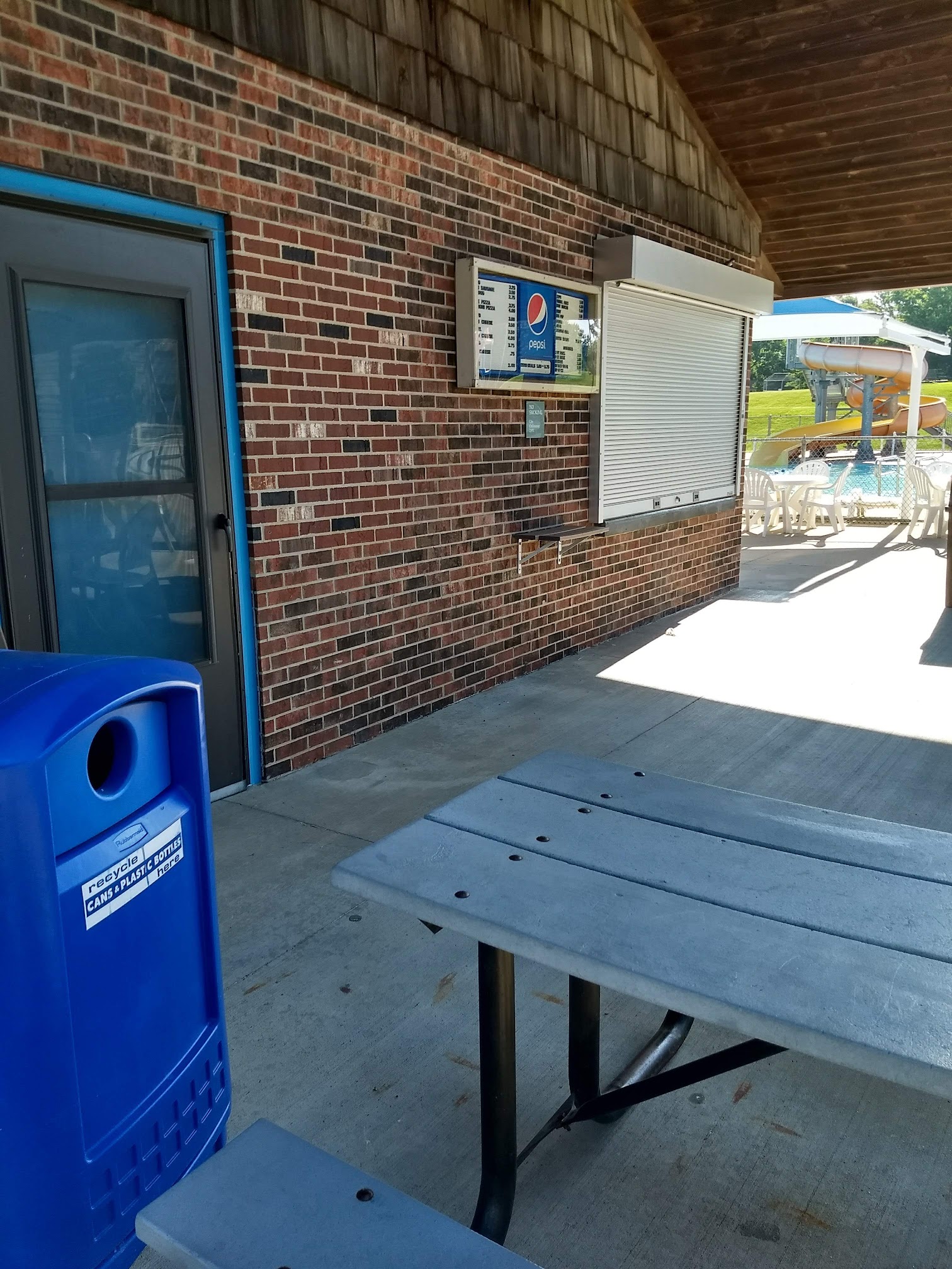First time visiting, and the second visit I bought a family pass for the outdoor pool this year. This facility has been renovated in the last 2-3 years, so I'm told! Which is great because it's very well accomodating! The layout is perfect. This place appears packed, yet there is so much space that everyone has a great time. They have 2 water slides, a diving board, swim meet platforms, a rock climbing wall and a really fun splash pad. They have a small menu, which is basically all junk food and they are asking more than it's worth in my opinion, but you can bring your own food and drinks no problem and eat in the food court area or elsewhere. Everyone is pretty clean about the privilege. They also provide lockers; not sure if you bring your own lock or not, but it's available to you. They also have large restrooms with plenty of stalls and showers to rinse or clean yourself. I recommend it!
