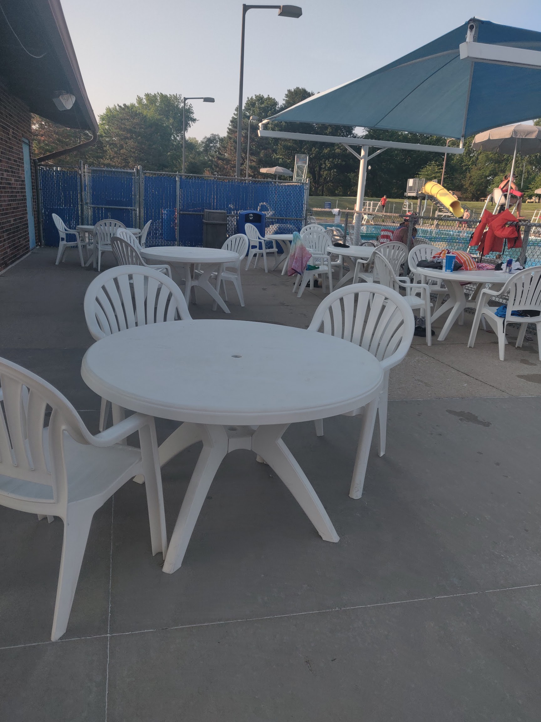 Pristine and large outdoor community pool located at Holmes and 70th, just north of the Gladstone Community Center, directly across from the Gladstone Police department and Gladstone City Hall. Sun-Mon 12-7 Fri/Sat 12-8 The entrance is in the front of the building at the top of stairs with a brown cupula facing west towards the Gladstone Police department. Nominal amounts of parking available in front of the pool, large parking available by turning at the fourway stop into a large parking lot situated between the community outdoor pool and the community center. Very reasonable season membership rates, current 2023 daily rates are $8, $5 after 5, and children under three are free. Spacious changing rooms with separate stalled shower and toilet facilities, but no lockers. Just take your stuff in a bag and find a place. I've heard of no issues with anyone's belongings. extensive snack bar with shaded eating area, and hundreds of white lounge chairs surrounding in both shade and sun. Expansive splash zone on concrete, huge shallow end with both zero entry and stair options, wall divider with a large free swim deep end, and three lap lanes. Two tubular water slides of varying sizes, one is quite large, one low diving board, and a rock climbing wall for jumping off into deeper water. All areas are zoned off safely, including splash zones, with buoy ropes and double lane lines. Ample amount of lifeguards with visible red swimwear and whistles, seem to change posts every 15-30 minutes. My only ding is that it is not especially ADA friendly. Wheelchair accessibility would be difficult, there is only one ADA changing area, however, the others are so small that if you are actually trying to change, you almost have to use that one. I am visually impaired and I have some crazy, embarrassing stories. Some of this is to be expected, but there is always an amount of nervousness due to multiple obstacles and inevitably striking kids that magically appear in lap lane. Everybody's been pretty cool about it when I ask for help, so honestly, not that big an issue.