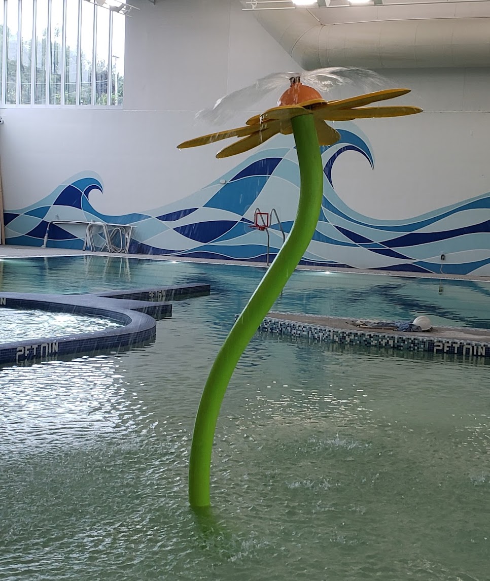 Community venue with two pools, a gym and a basketball court.