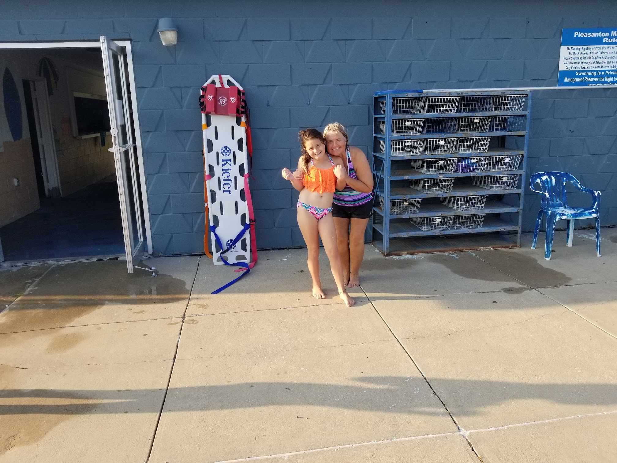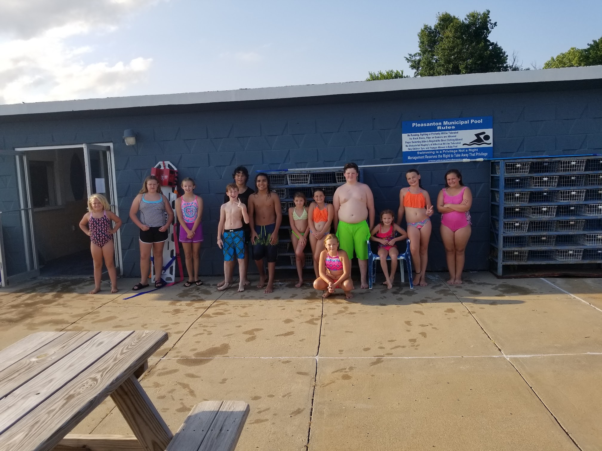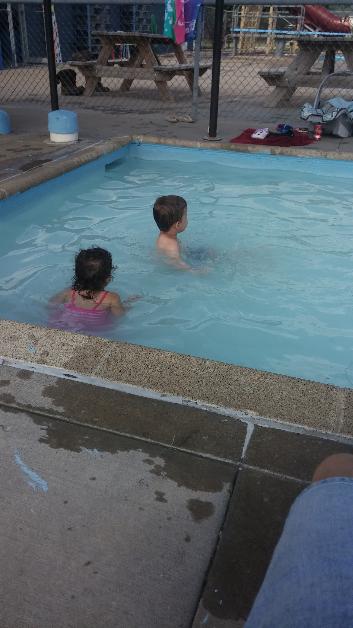 floor is pretty rough and cracked, restroom smells like a pit toilet, water could use a little more bromine... otherwise fine.