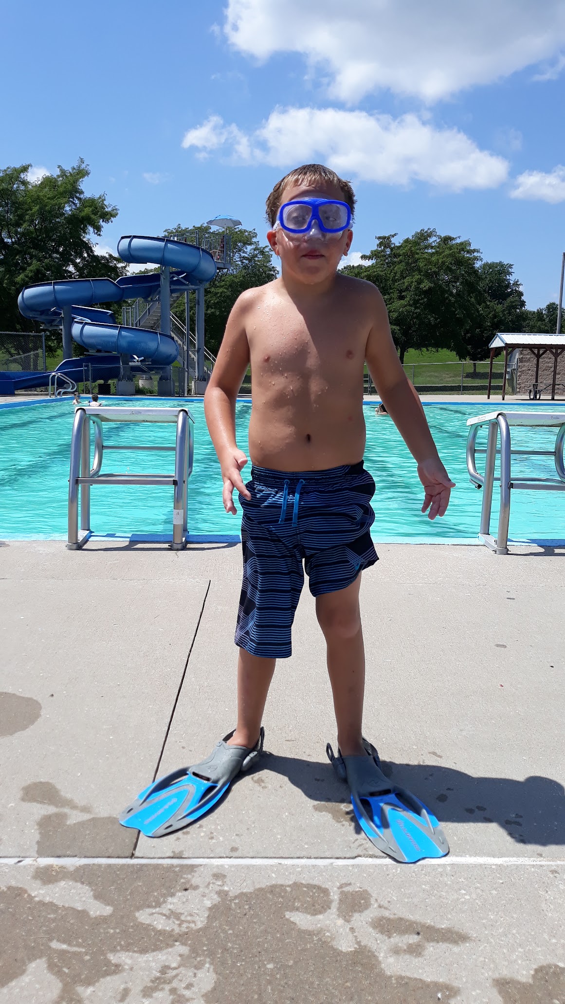 It has a really cool diving bored and a really cool slide and rock wall