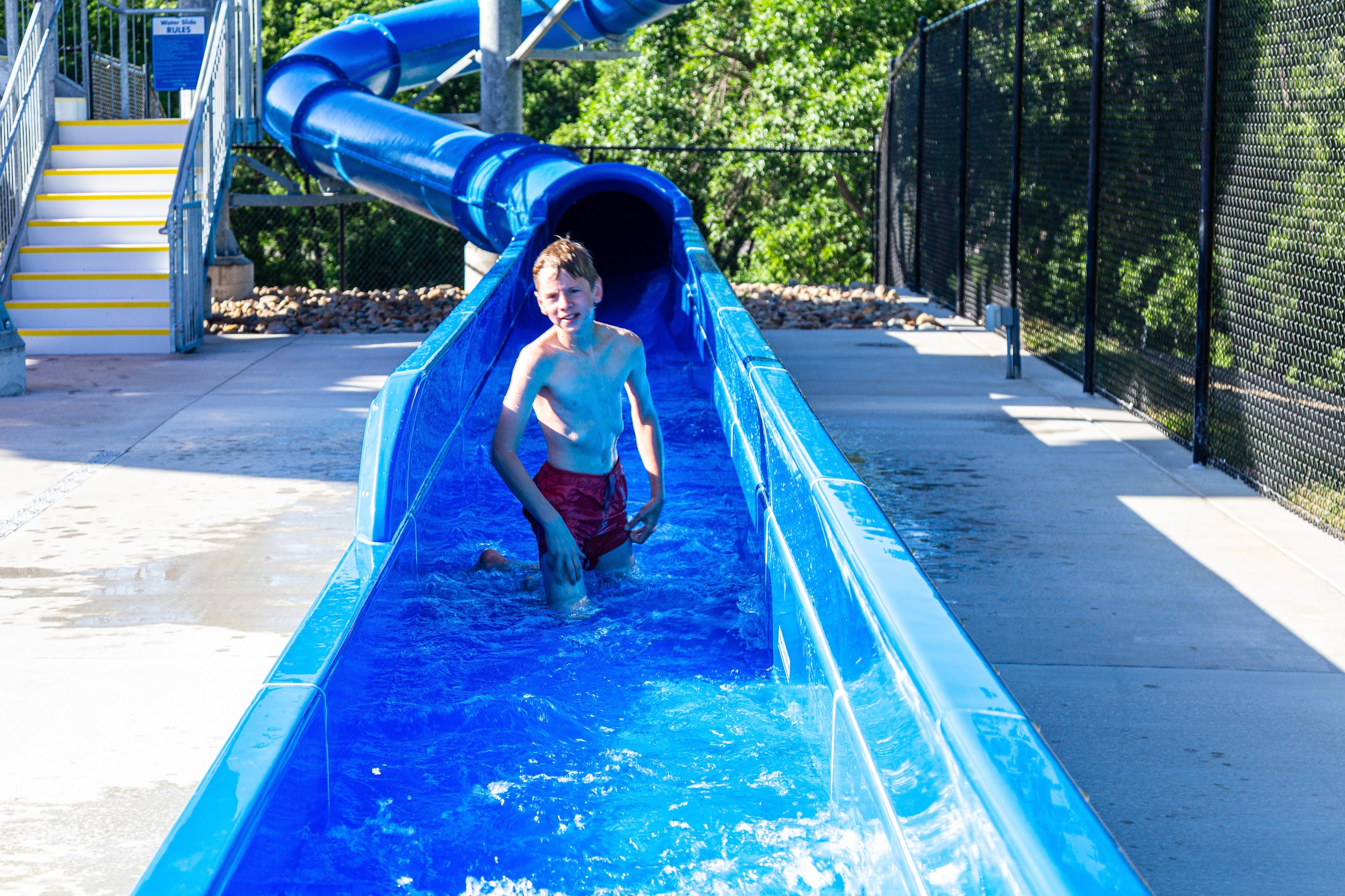 I’ve been to a lot of the aquatic centers around Kansas City and surrounding areas. I loved them all, and I hoped this would be the same. Within an hour of being there we have to get out for a child pooping, a little while later I had to ask the lifeguard to stop the child that was pushing other children down the kiddie water slide, she then asked him to keep his hands to himself and then watched him do it again over and over, saying nothing; the lifeguards are so diligent and actually do there job at every other aquatic center but this one. Then within the next hour they’re calling us to get out again because someone vomited. We’ve been swimming all over Kansas this summer and have not had that happen once, to have it happen twice should be a sign. Do not waste your money, do not bring your family here.