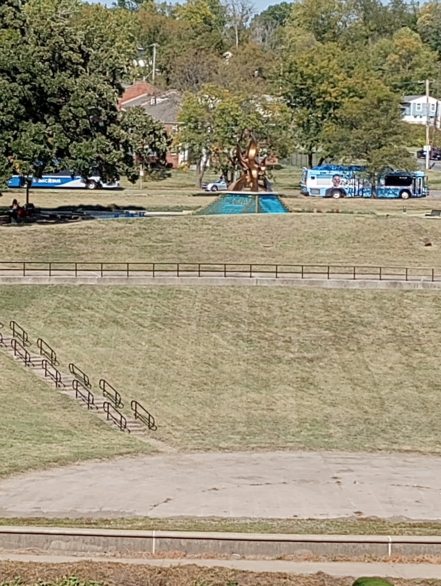 The spirit of Freedom fountain flows like the desire within us individually to be free, which we lose every day with the installation of every camera, and the government upload through the 5G network to the NSA database in Utah every conversation we have out here, regardless of how mundane. Resist!!!!!