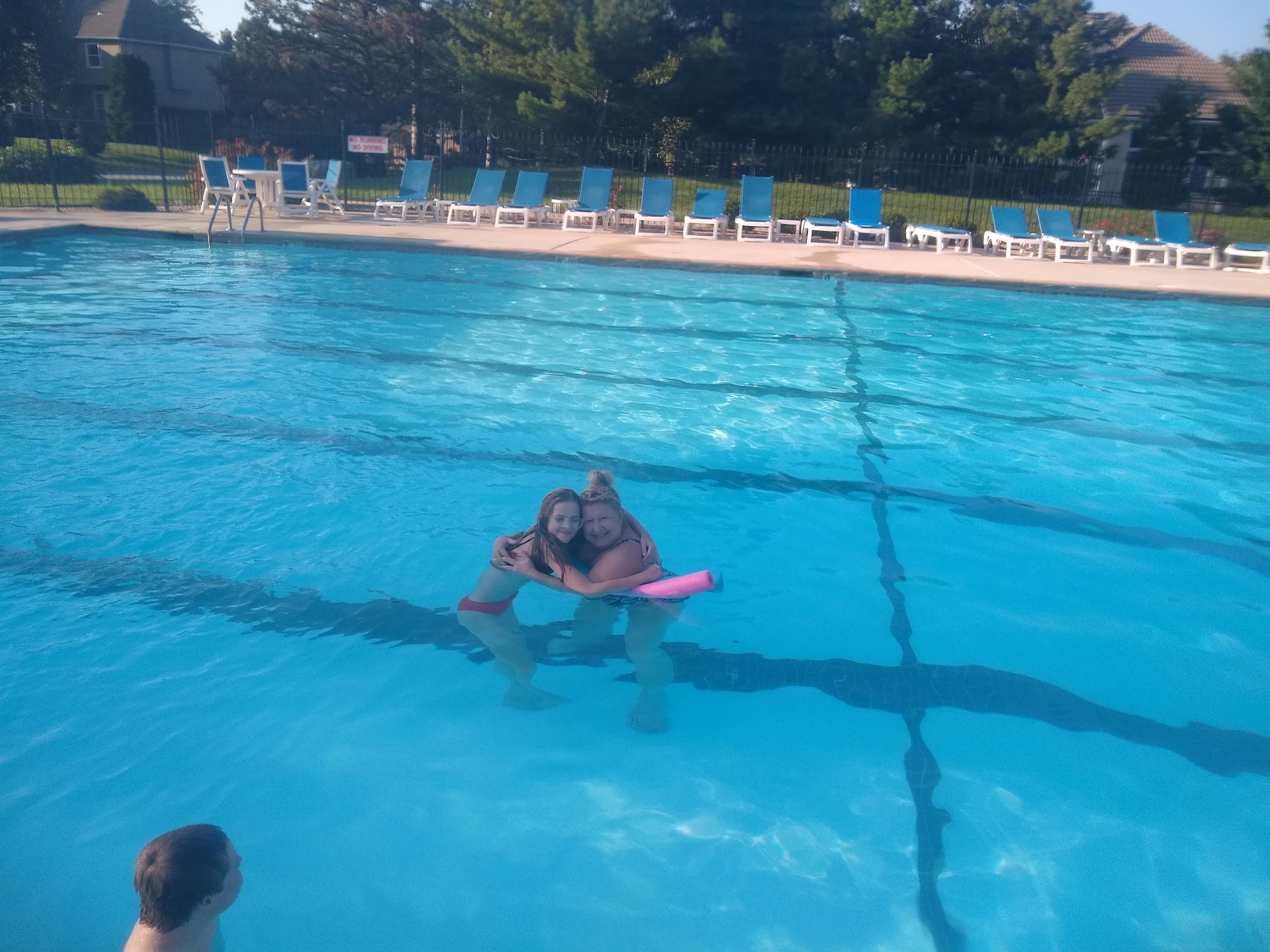 This pool is great for swimming in the summer! You can also kick back and relax on the chairs. Friendly lifeguards there to keep you safe, and it's a scene when the Winterset team swims in this pool during a competition!