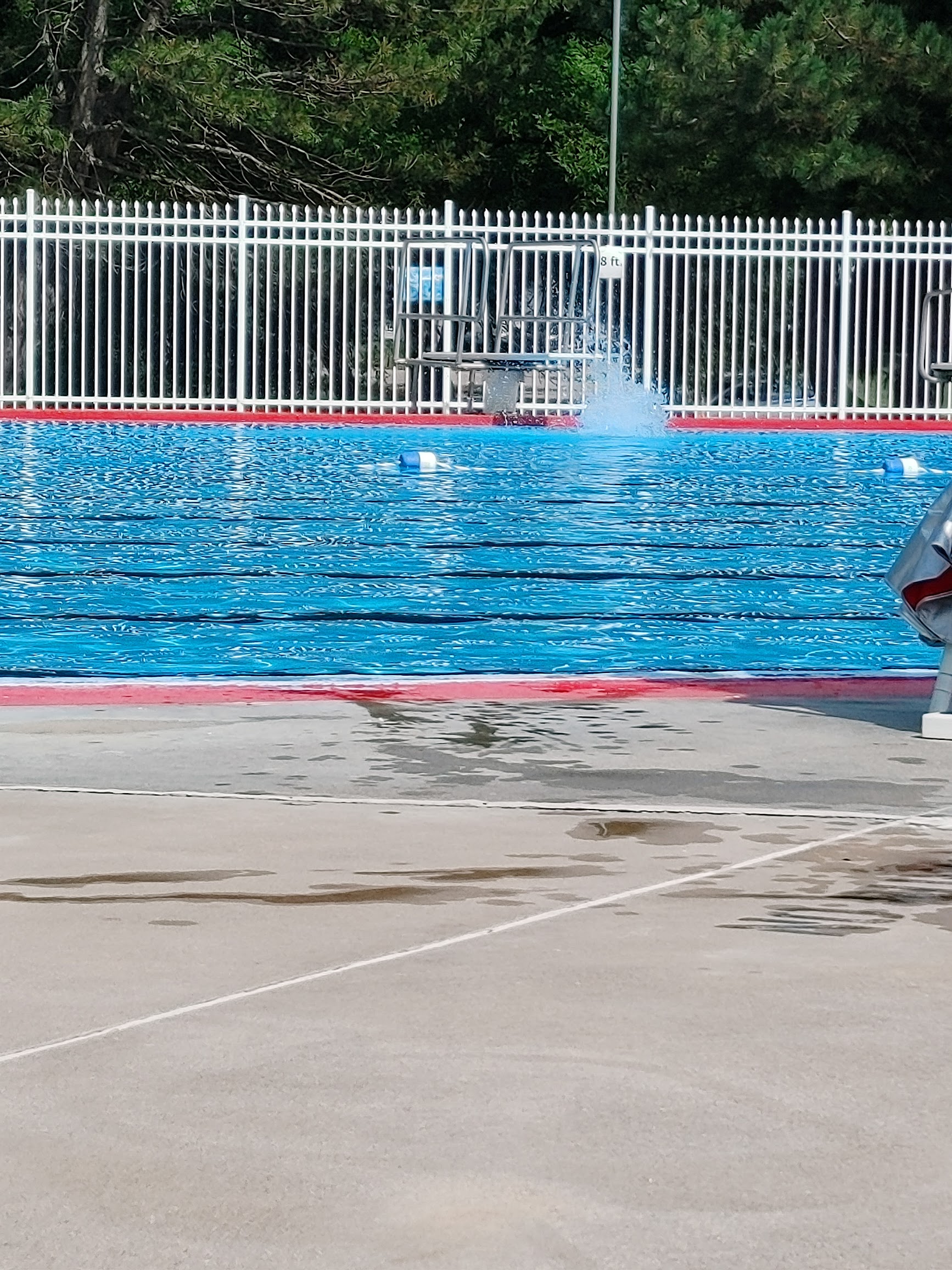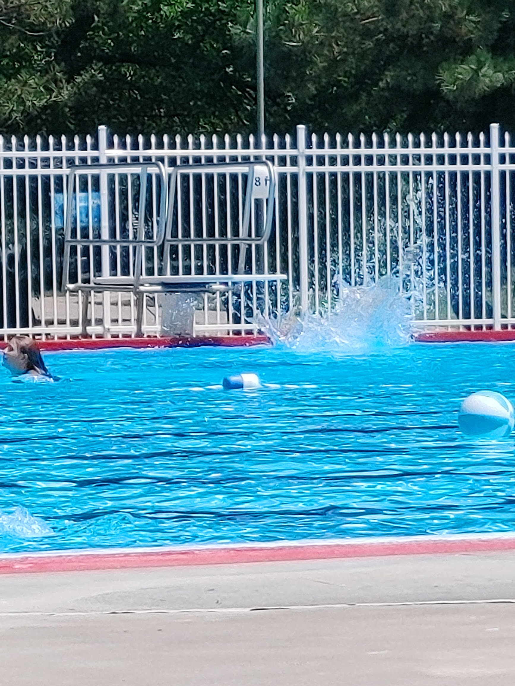 It's a good clean no frills municipal pool. It has no slides or anything fun like that, however it has a nice sized shallow end for the youngsters as well as a large center section which measures four to five feet deep. At the far end of the pool is a deep section containing two low diving boards.