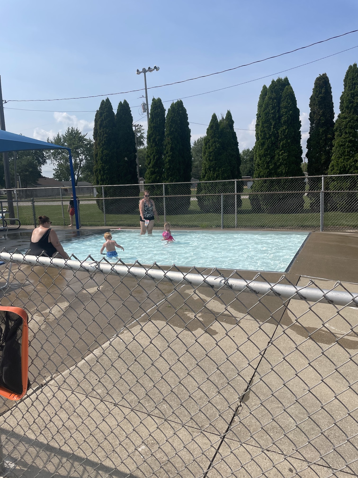 This is a nice pool with a separate kiddie pool. Has a slide and diving board,along with a couple basket ball hoops to shoot ball in the water. Offers a military discount and you can buy food and snacks there. Have plenty of chairs and some tables that are under shade. Highly recommend this place if you want a relaxing swimming experience.