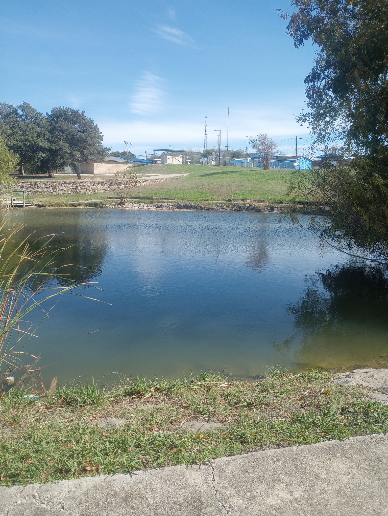 I love taking my dog to walk in this park around the pond. I enjoy watching families fish together, play together, picnic together and so much more. Baseball and soccer are always going on. The restrooms are well maintained. It is just so peaceful and beautiful. I feel refreshed every morning after my walk.