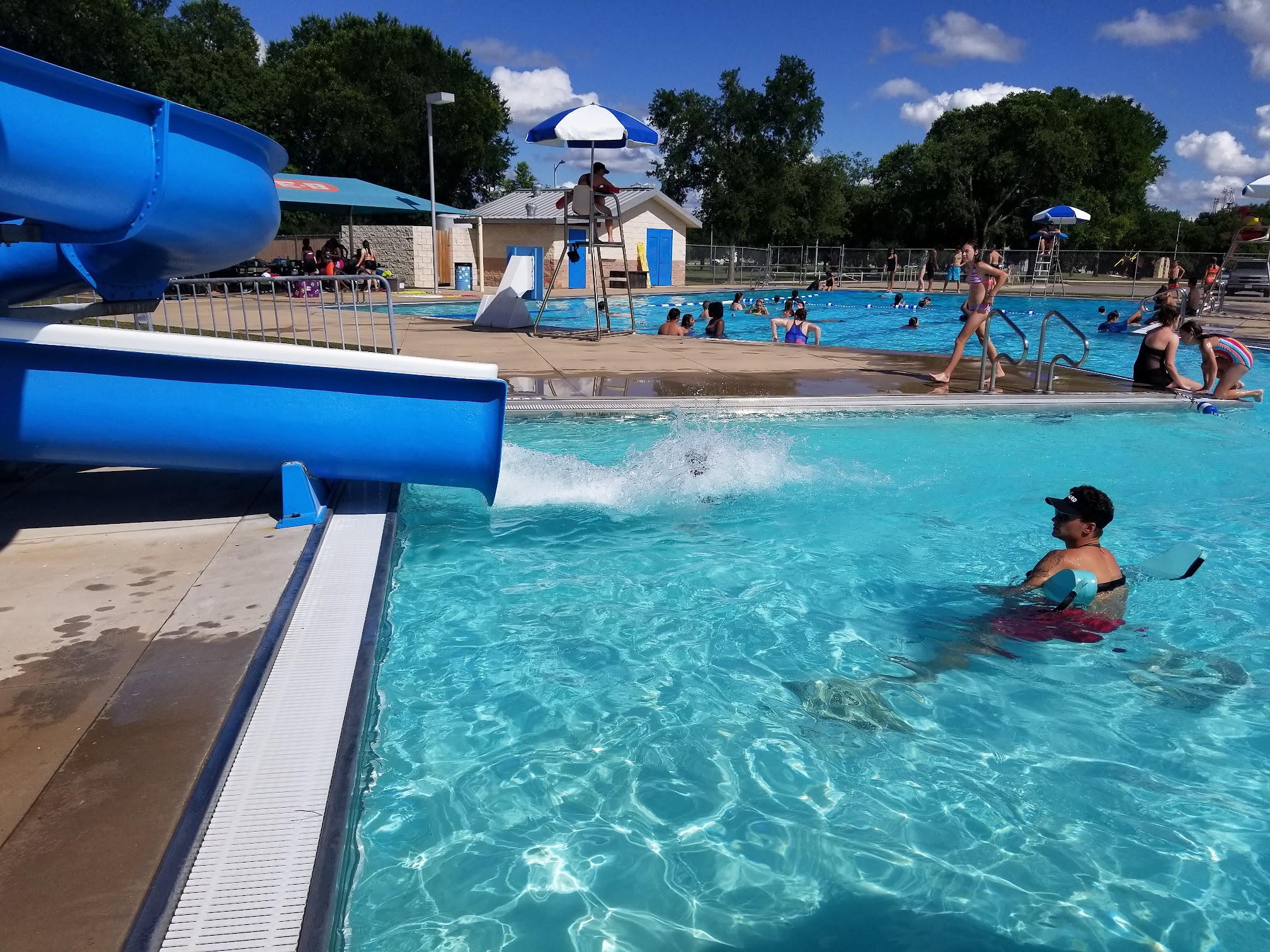 Clean public pool for all ages with a slide, shaded areas, a splash area and lessons.