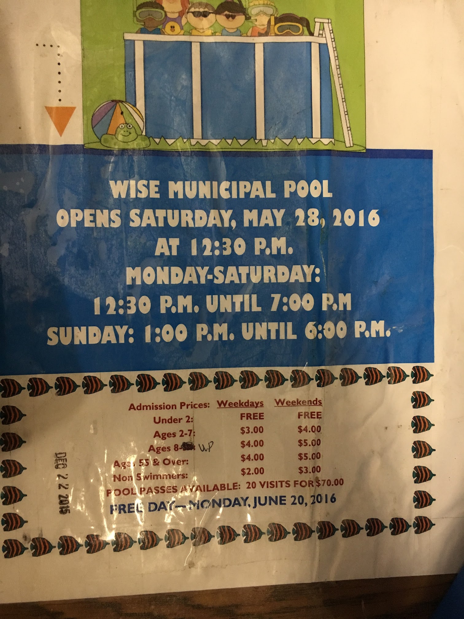 The pool is a great facility but the website needs updating. August 11 website indicates pool opens at 12:30 and closing at 7:00, we brought kids to swim and gates are locked. Pleas keep website updated. Traveled 45 minutes so big disappointment to children.