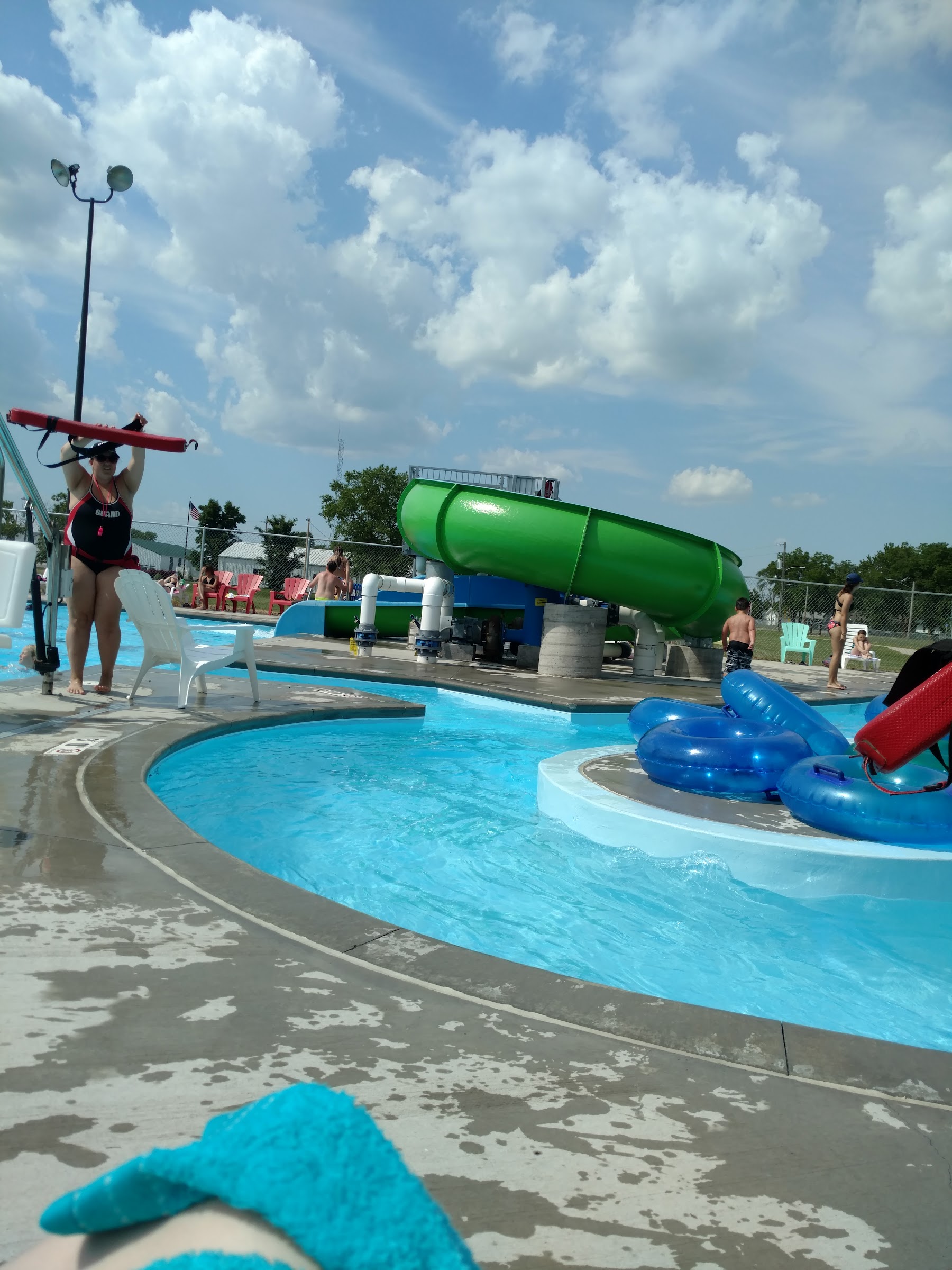 What are people saying (AI review summary)? The reviews primarily focus on a water park and an adjacent park. The water park is described as very affordable, with an entry cost of $3 per person and 'magnificent' food prices. It features a lazy river, a slide (noted for having 'cool freezing water' by one reviewer), a climbing rock wall, and various water activities suitable for all ages, including small children. Staff are generally considered nice, and visitors are advised to bring cash. One review mentioned bugs in the pool on June 2, 2025. The park outside the water park is highlighted as very family-friendly and enjoyed by children. Separately, one review praised the fair and weather for the current year and suggested bringing back the band 'Hairball'.