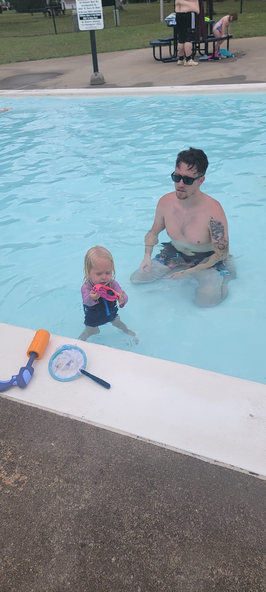 Nice pool, has refreshments, and lifeguards. They sell swim diapers for little ones. Looks to be accessible by wheelchair as well. Has a smaller pool adjacent to the main pool for toddlers.