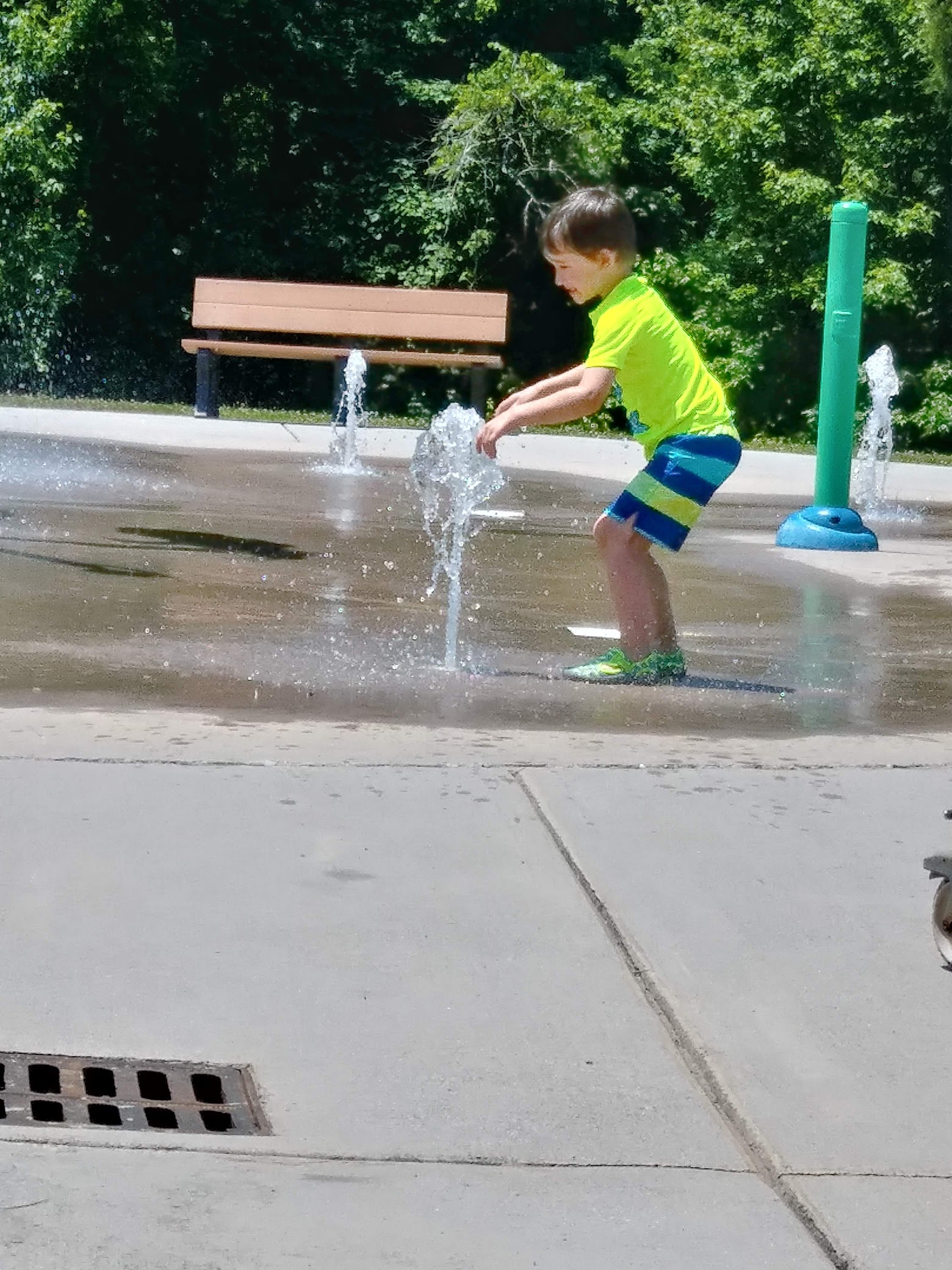 Heated pool with a splash pad and two slides, plus trained lifeguards.