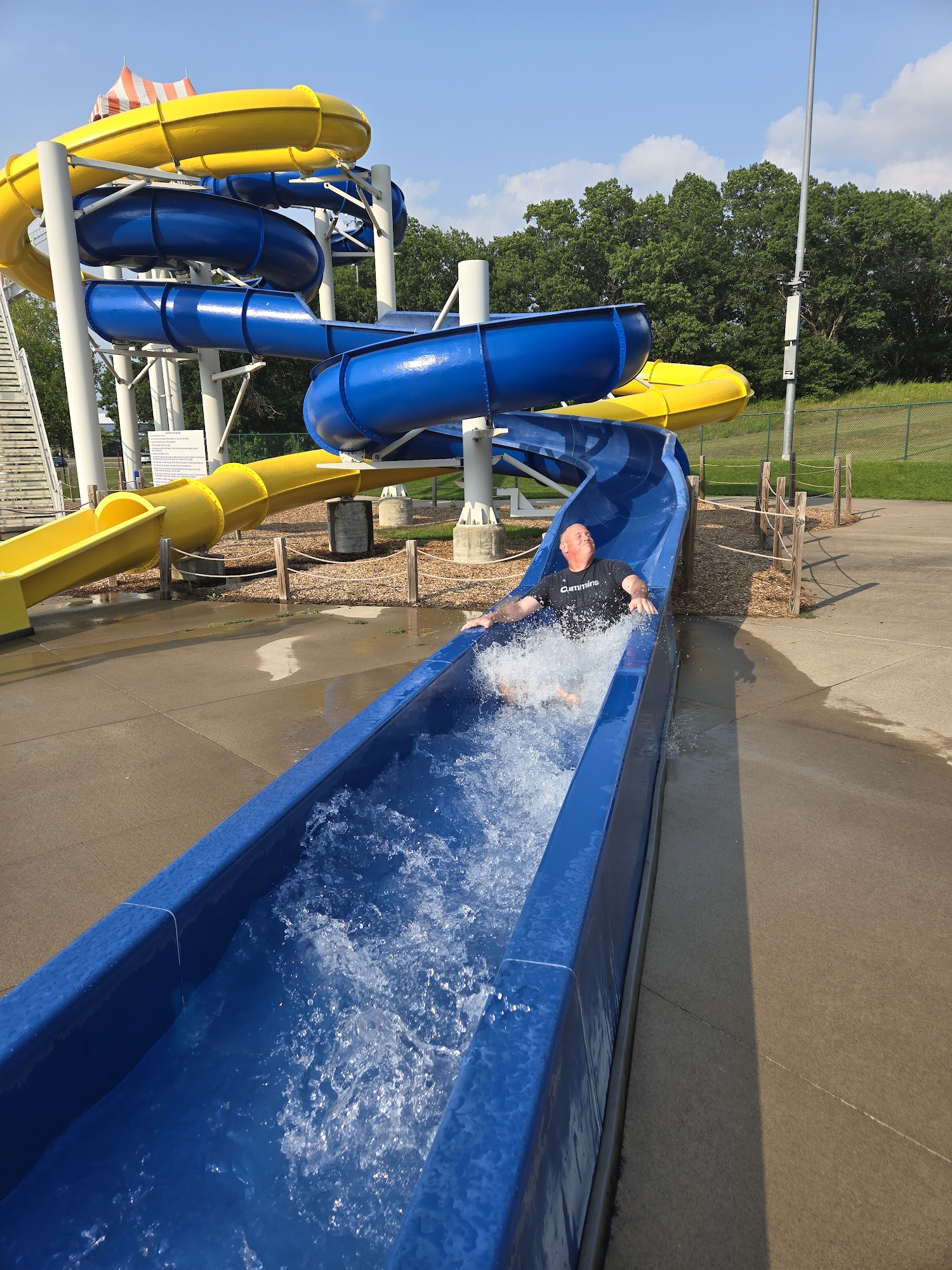 1st time here! The kids loved it. There is lots of variety of swimming & pool features. Deep & shallow pools, several slides, diving boards. There was also some sand features. There are concessions there & picnic tables. The rest room/changing area was nice. It seemed there were plenty of lifeguards as well.