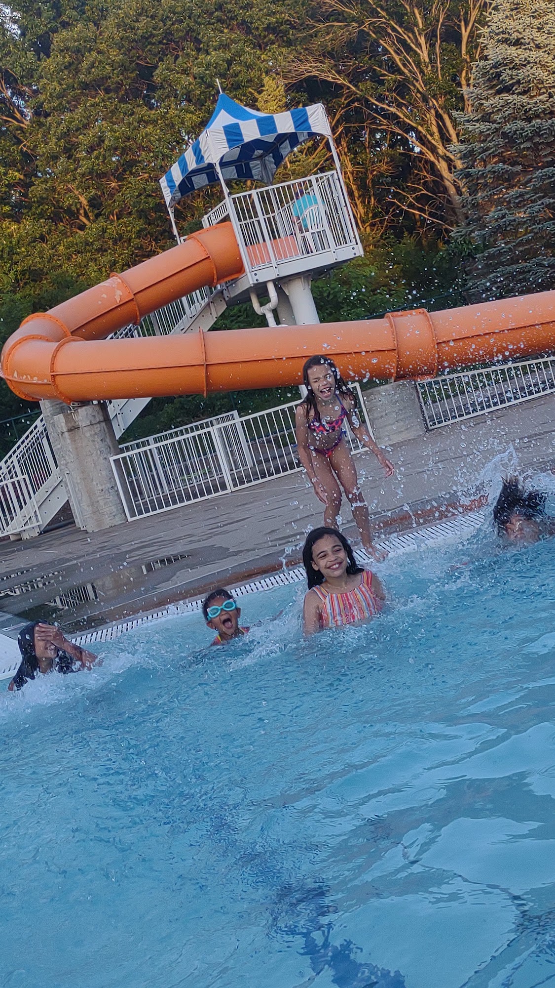 Great for a small neighborhood pool. As busy as you would expect on a hot summer day. Concessions are cheap enough that your kids can pay 😉 @ 2:30 they do a half hour break for lifeguard "safety". Not a lot of shades options but there's some. Safe, fun and affordable.