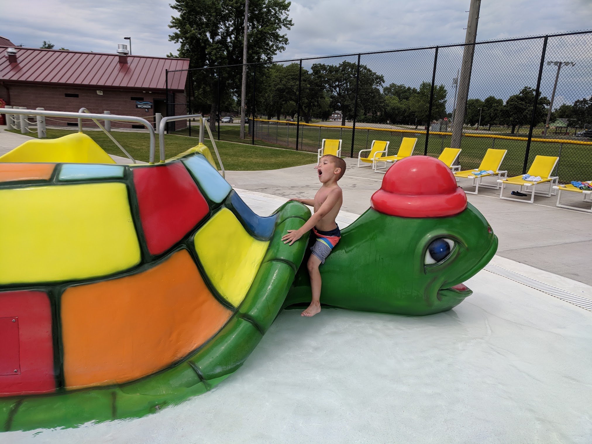 Would recommend! Was a nice way to spend a hot day. The slide was a lot of fun and loved the lazy river at the bottom. Plenty of shade covers and lounge chairs. Lifeguards were friendly. Snack bar was reasonably priced! Looking forward to going back next year!