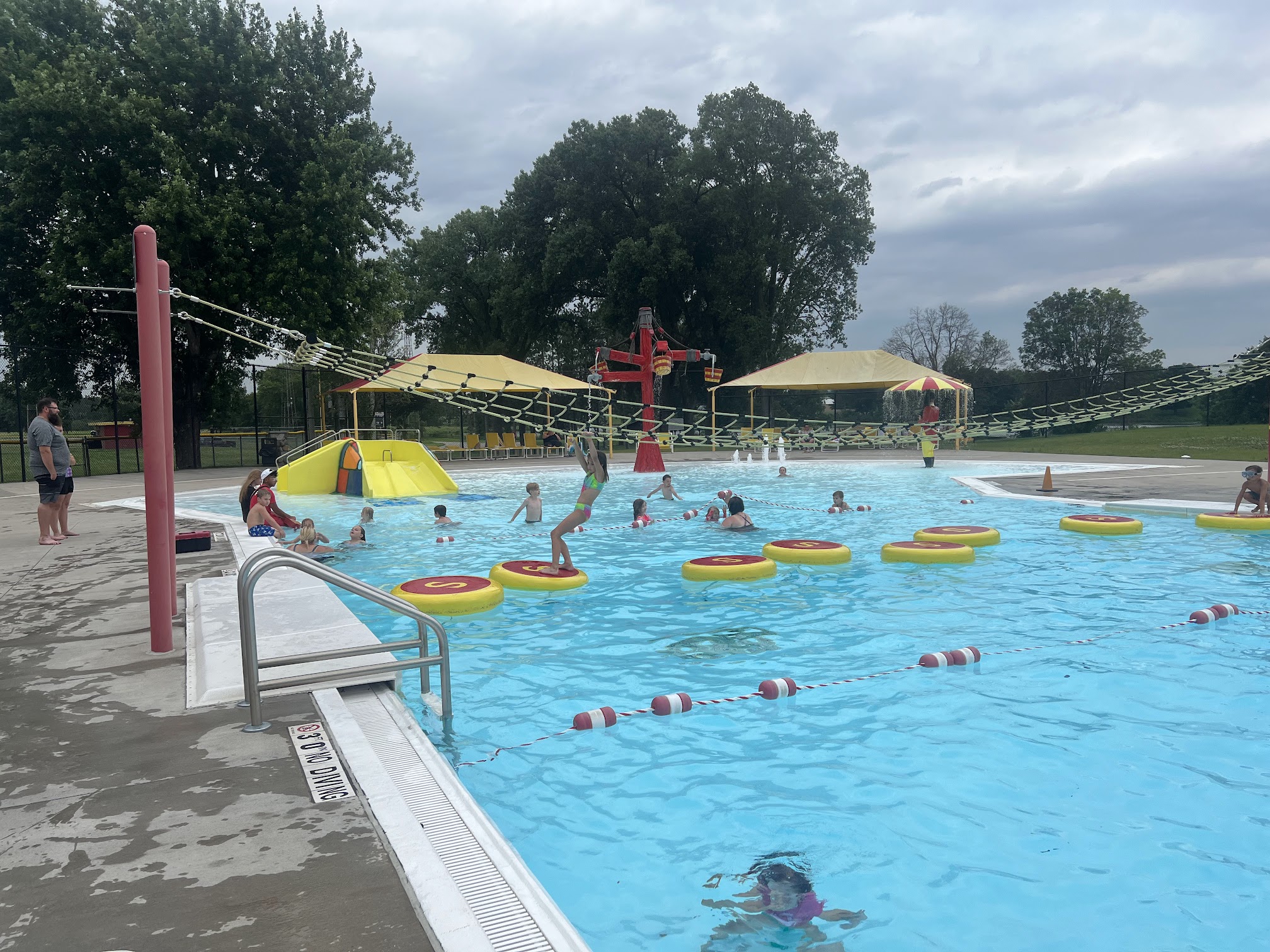 What are people saying (AI review summary)? The water park generally receives positive feedback, with many visitors calling it 'great,' 'awesome,' or 'fantastic' for families and all ages. Popular features include the slides, lazy river, kiddie areas, deep end with a high dive, and a rope crossing. Guests appreciate the abundant shade, lounge chairs, and reasonably priced, delicious food. While staff are often described as friendly and helpful, a significant safety concern was raised in one review regarding inattentive lifeguards, where a parent had to intervene to save two drowning children. Despite this, many reviewers expressed intentions to return.