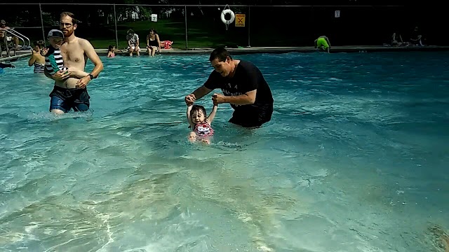Took our 2 1/2 year old here and this pool is great for the littlest swimmers!!! The shallow/wading end is the largest part of the pool and even the deep end past the rope is only 4 ft deep. There is a couple water spouting features for the kids as well. We had a blast!!! Best of all is that it's free!!! You just need to bring one adult ID, I believe proving someone in your group is from Concord.