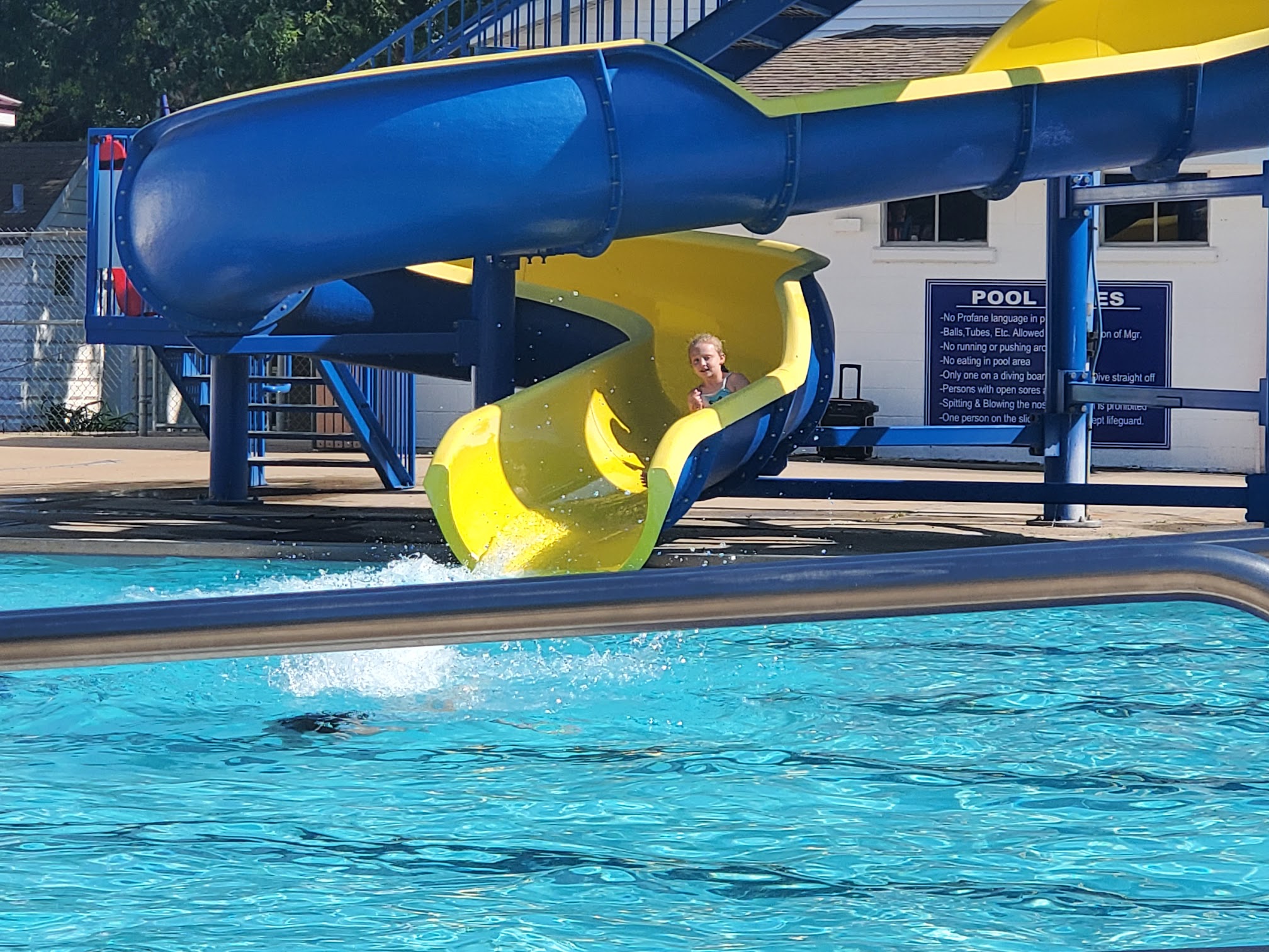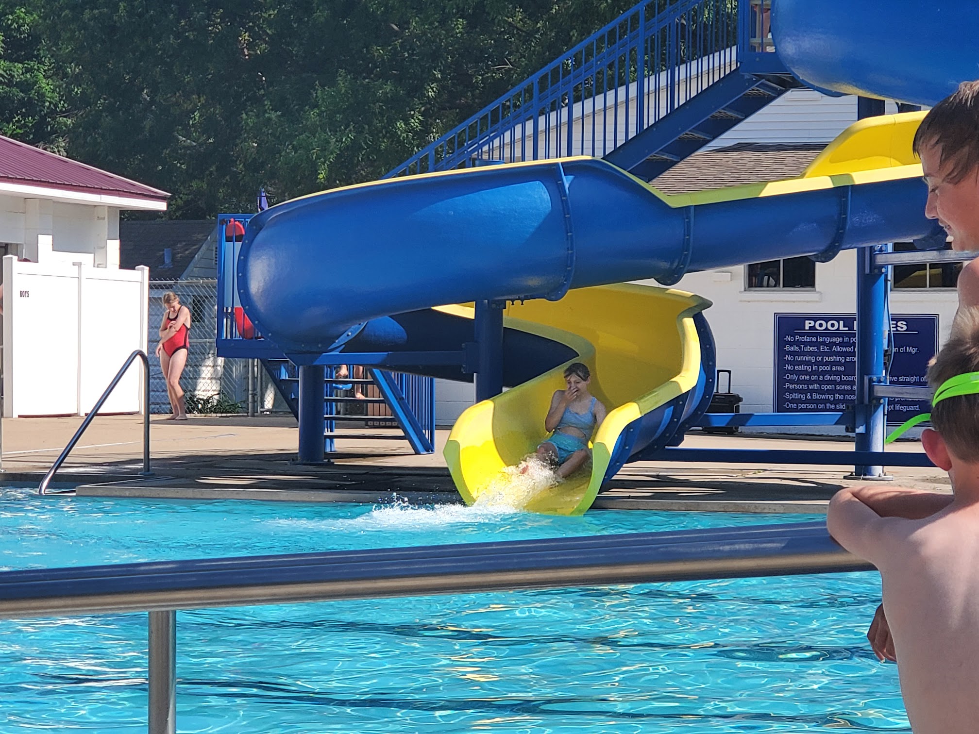 Clean, family-friendly venue featuring a pool with 2 diving boards and a waterslide, plus lifeguards. Friendly staff.