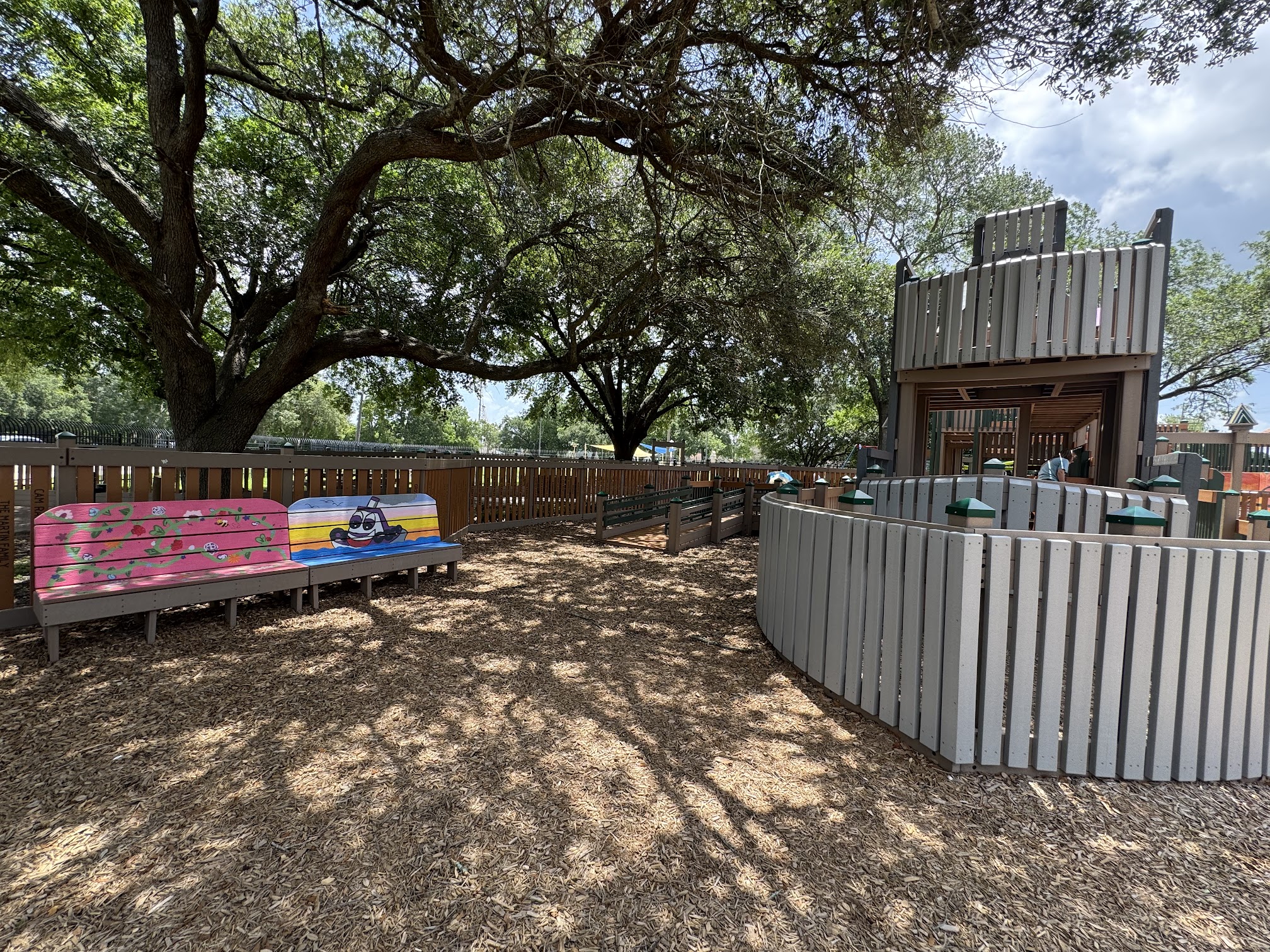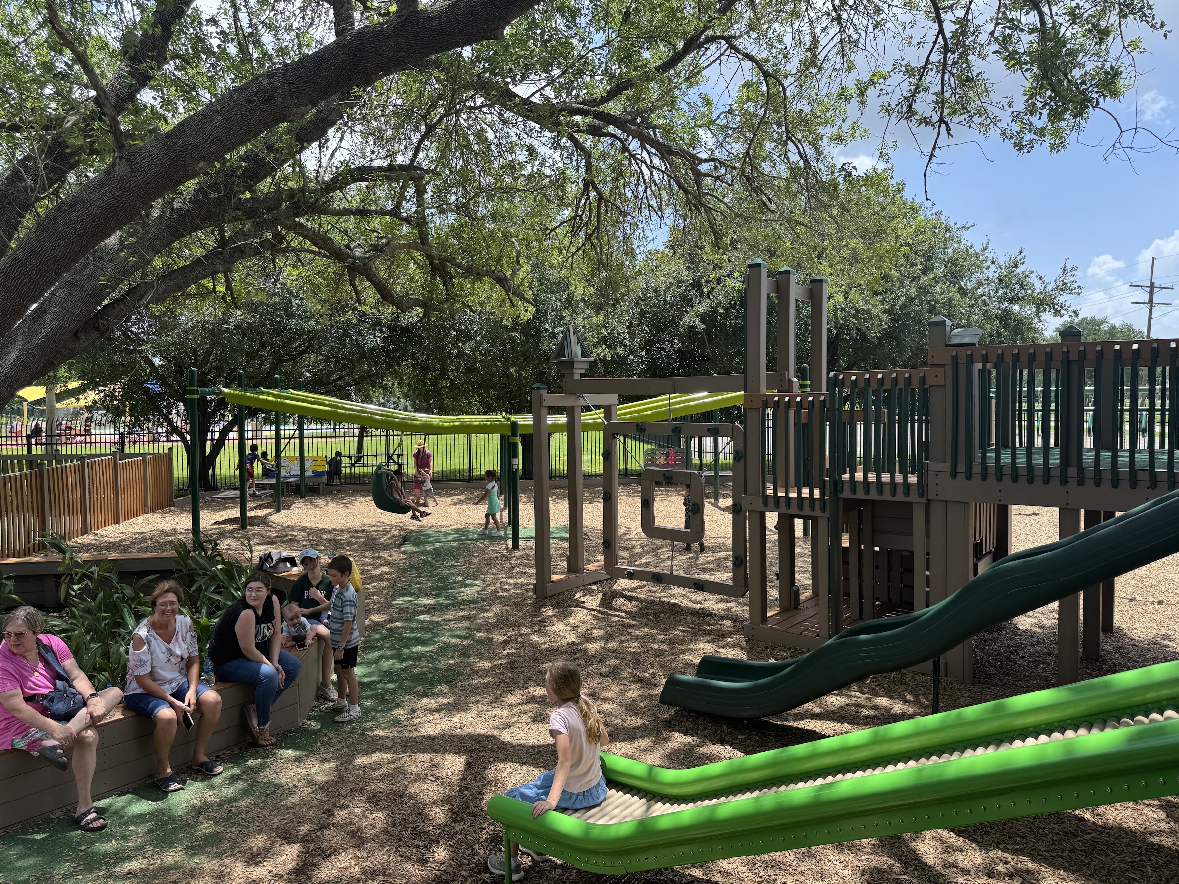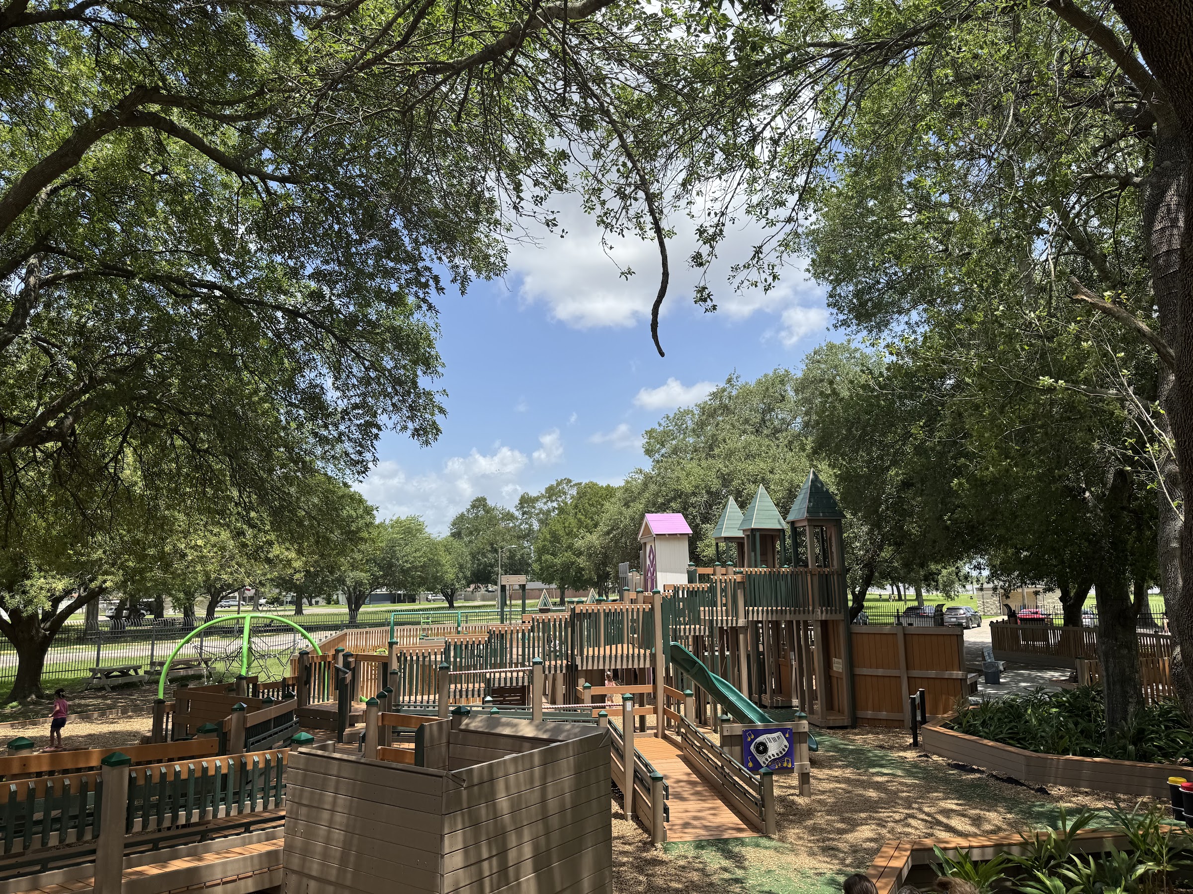 If you’re looking for a shady play park to bring grandkids or any kids, this is where to come. Age appropriated areas designated, plenty picnic tables in the shade too. Zipline for littles. Next door is water splash park. Rate this park the best locally especially in summer months.