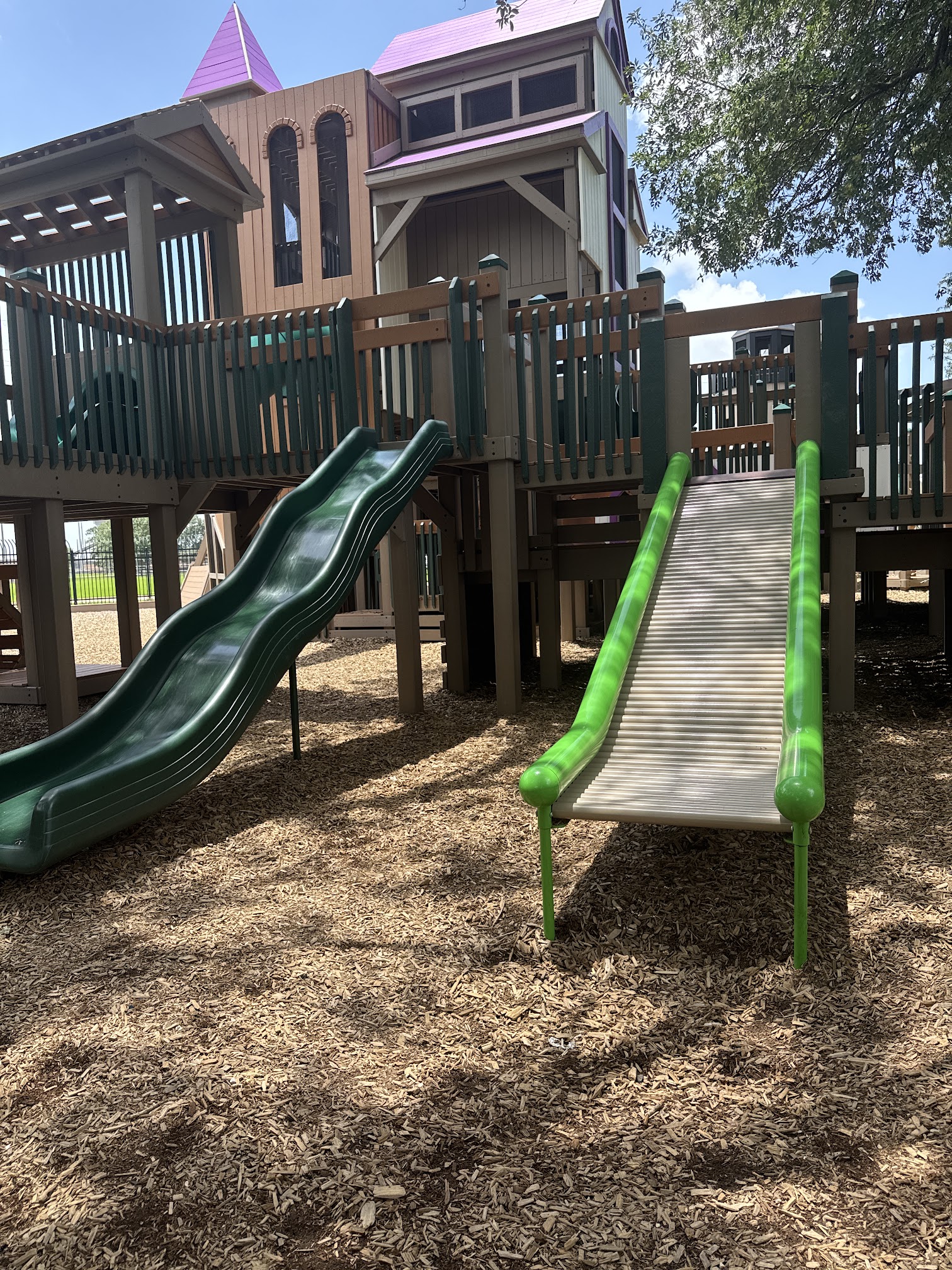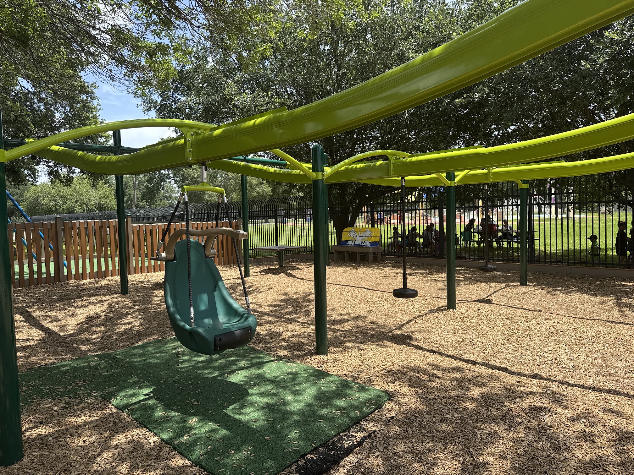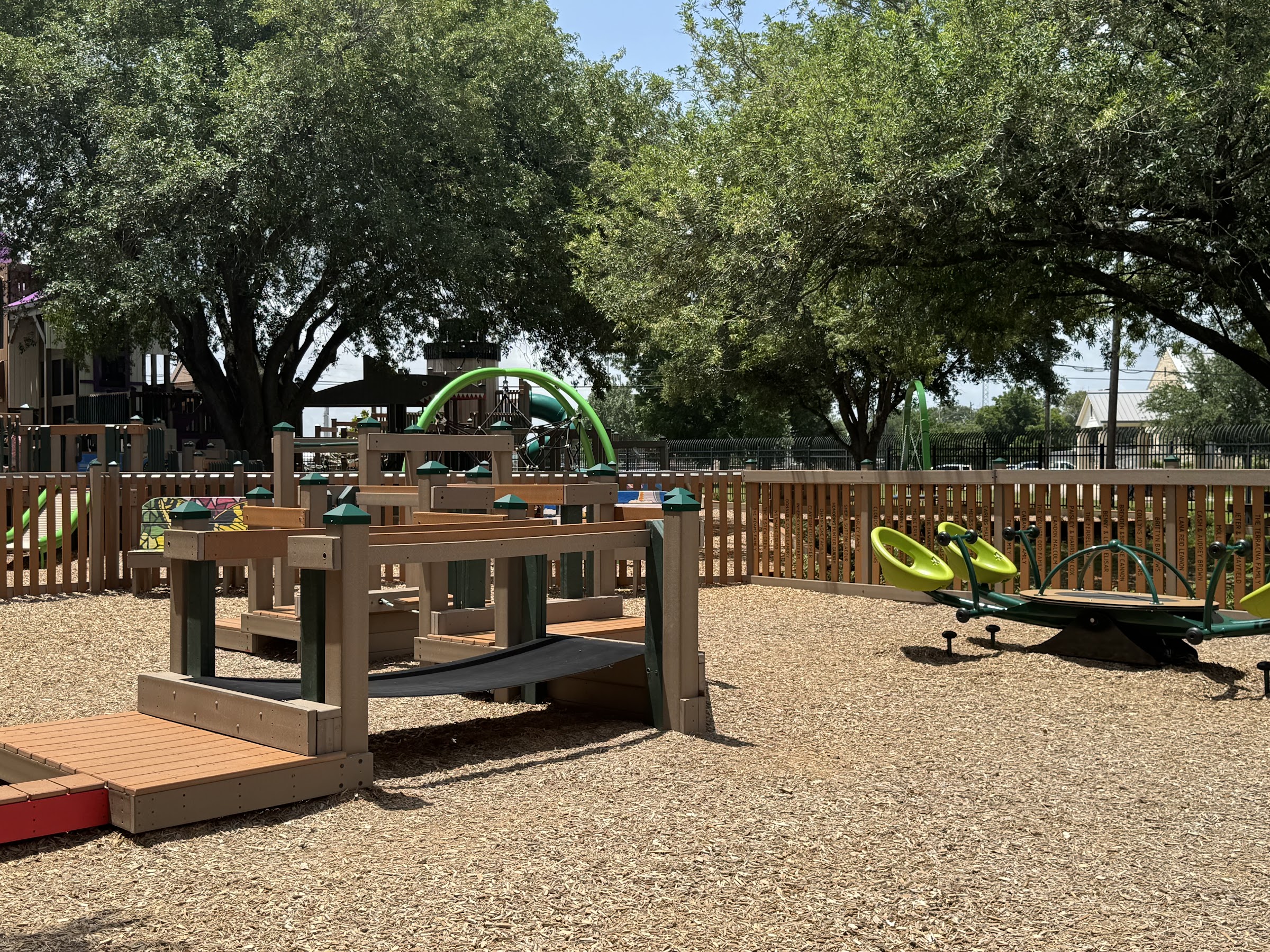 If you’re looking for a shady play park to bring grandkids or any kids, this is where to come. Age appropriated areas designated, plenty picnic tables in the shade too. Zipline for littles. Next door is water splash park. Rate this park the best locally especially in summer months.