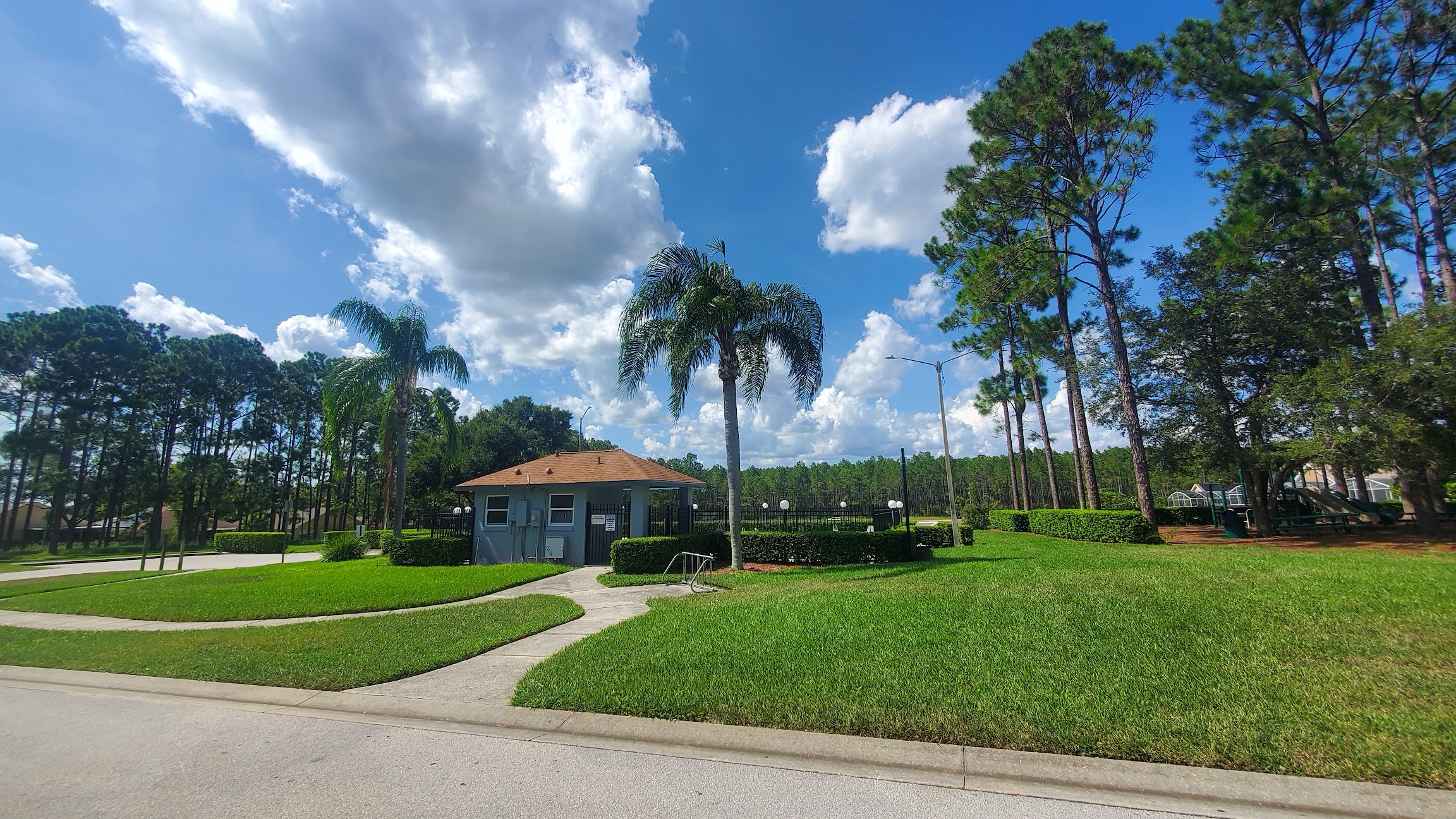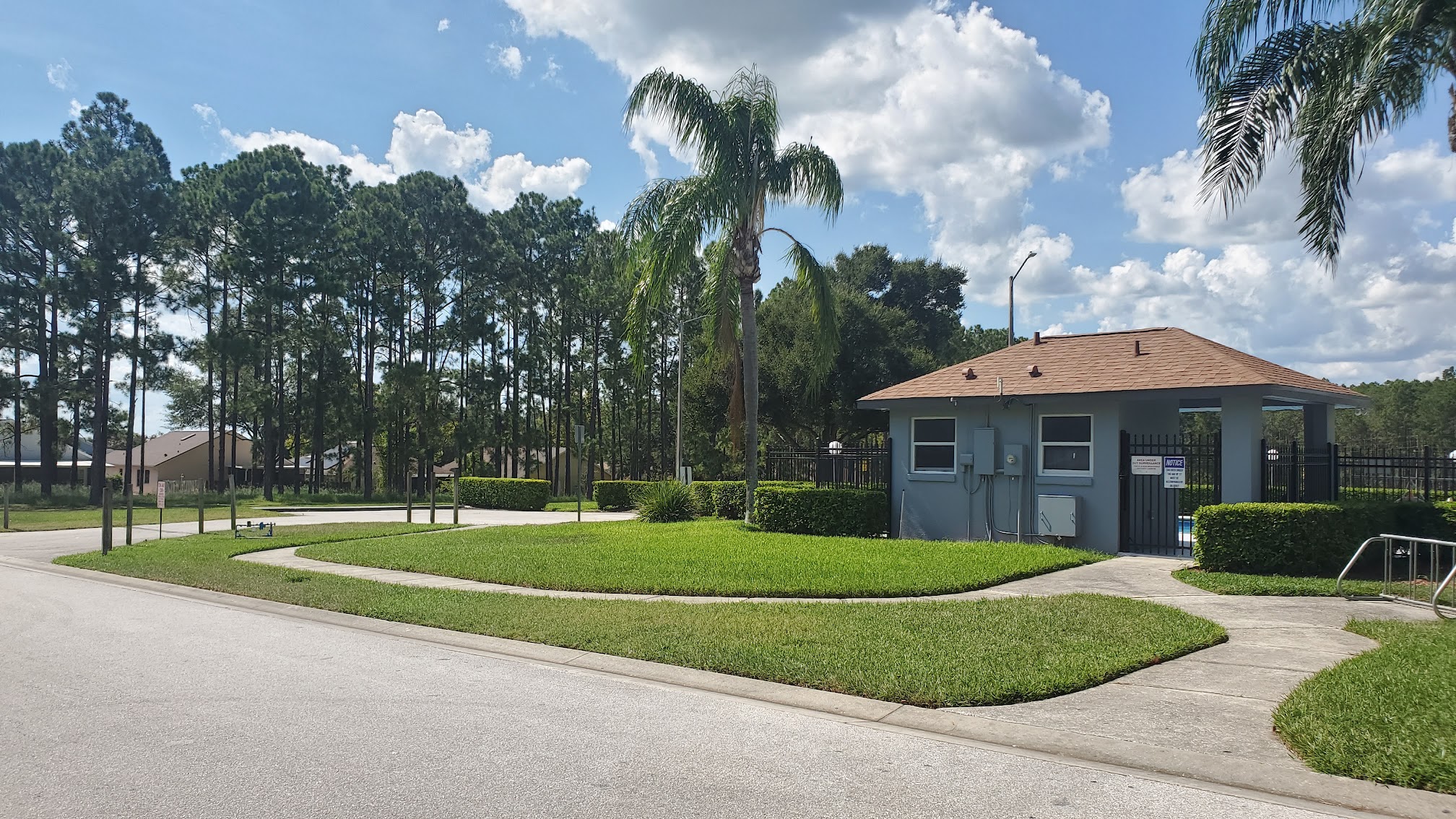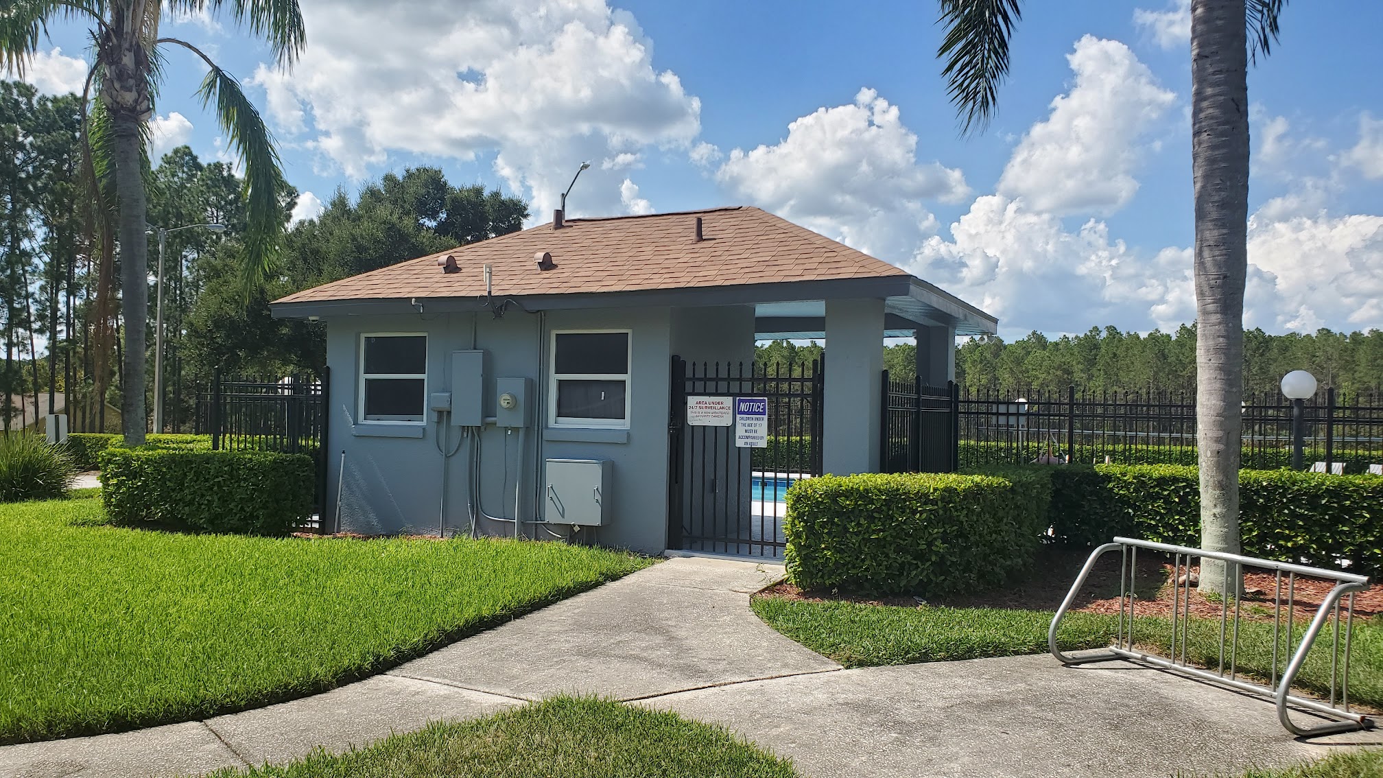 Very small, private pool with basic restrooms, exclusive to residents of this neighborhood. Recent updates have been appreciated, however they used the wrong type of paint/coating when refinishing the deck. Use extreme care as it's very slippery!