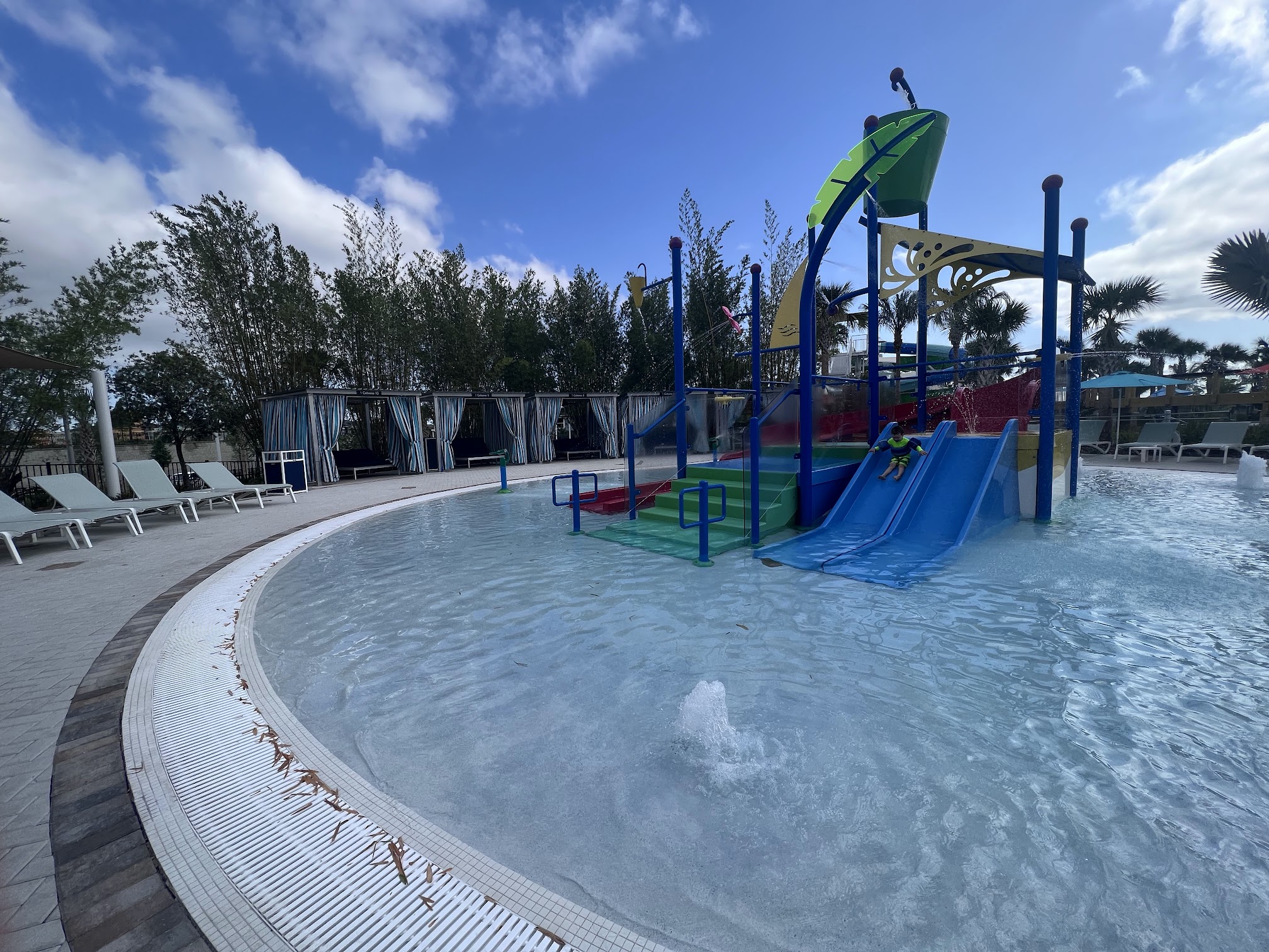 Visited location for spring break with the family. We were 7 in total. Lines for check in were not horrible but the first time you did have to wait a bit. After you have your pass you can enter in a line that's faster. Very busy place but it is nice overall. Great Airbnb for families to stay. Not many toiletries and towels given. Kitchen well equipped with utensils but you have to bring everything including salt and pepper. The pool at the club house is nice and lazy river is on the small side with not many tubes to use when at lazy river. They have 2 slides in the lazy river and a kiddie pool separate. The food at the bar is pricey and they are understaffed. Would not stay here again but not a bad place.