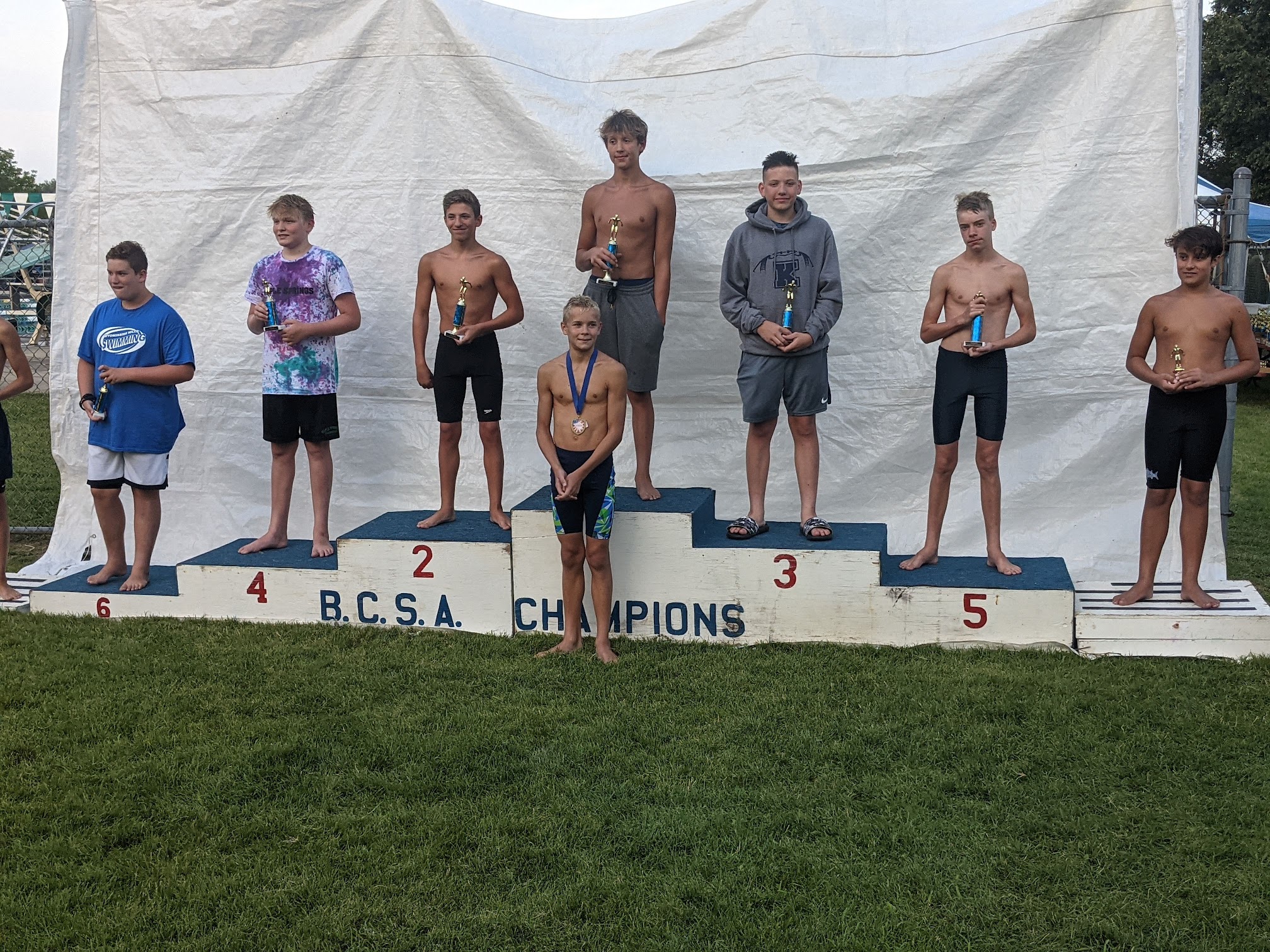 Community outdoor pool open from Memorial Day through Labor Day with diving and lifeguards.