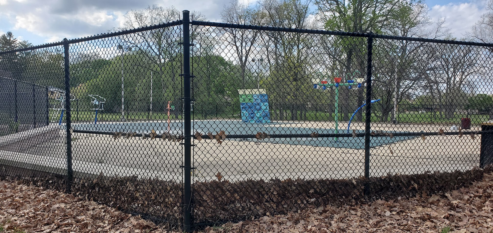 Updated public pool featuring a diving end, a climbing wall and a splash pad for the kids.