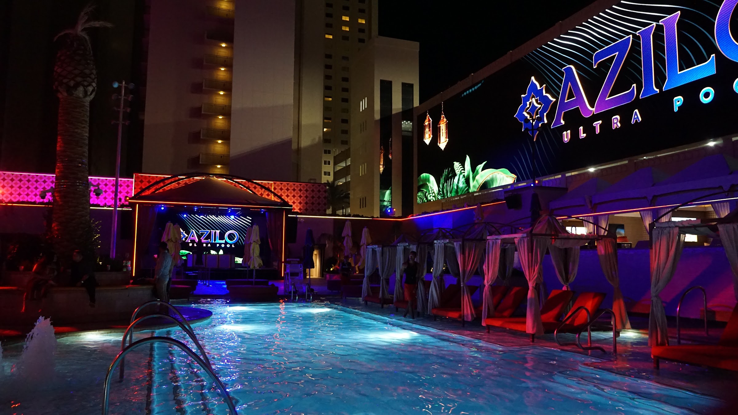 A small pool on the rooftop of Sahara. Today was a Thursday and they allowed you to bring your own water and beverages purchased on site. The cabanas were free today in a first come first serve basis. They told me the rules change on the weekends when the bar is open. But the bar is not open on weekdays.