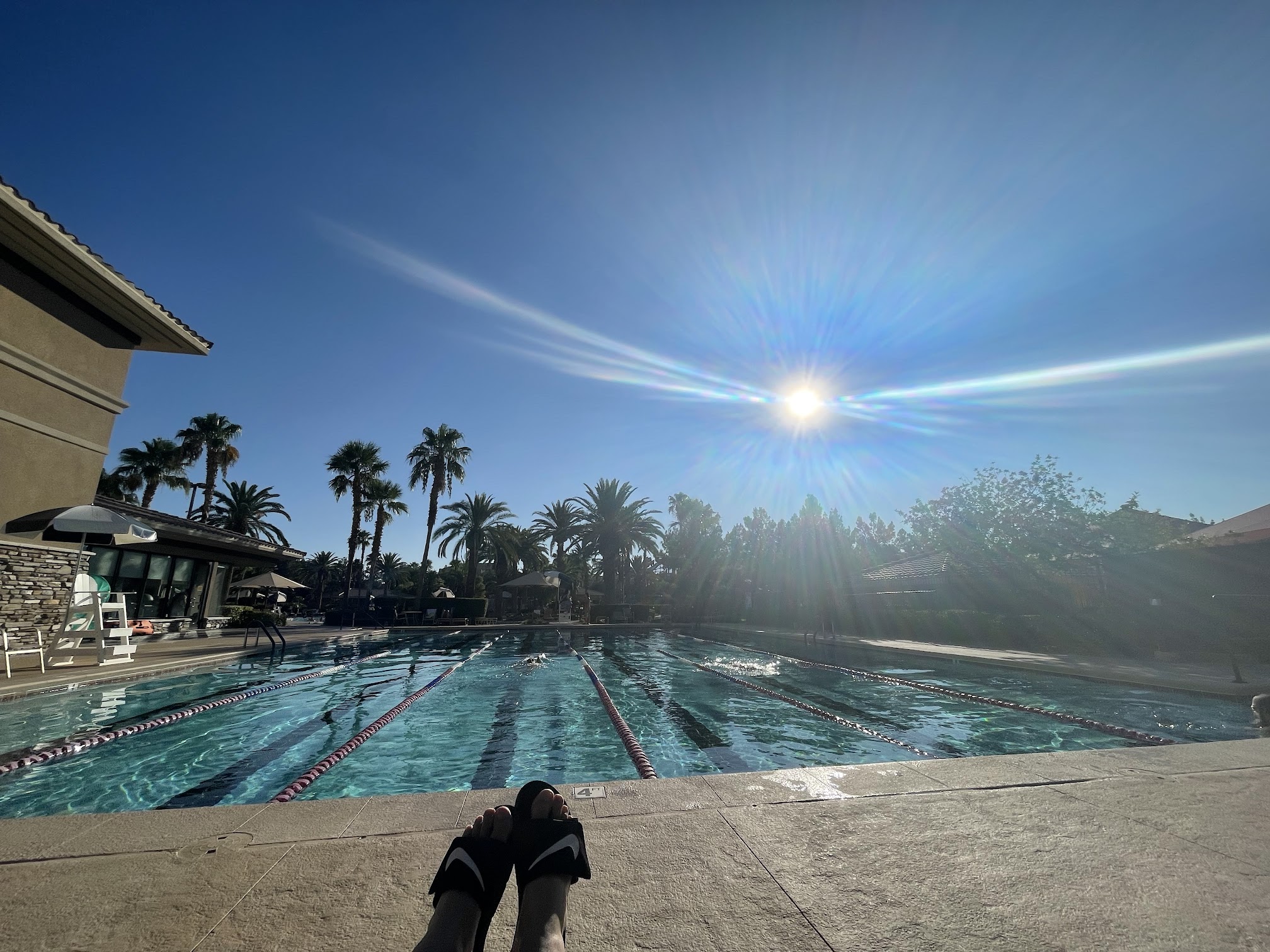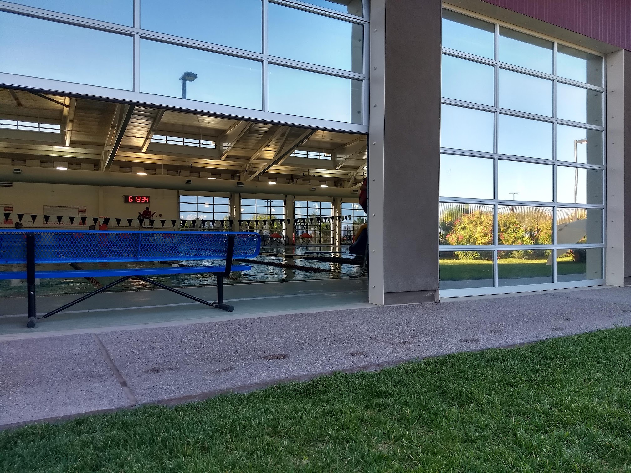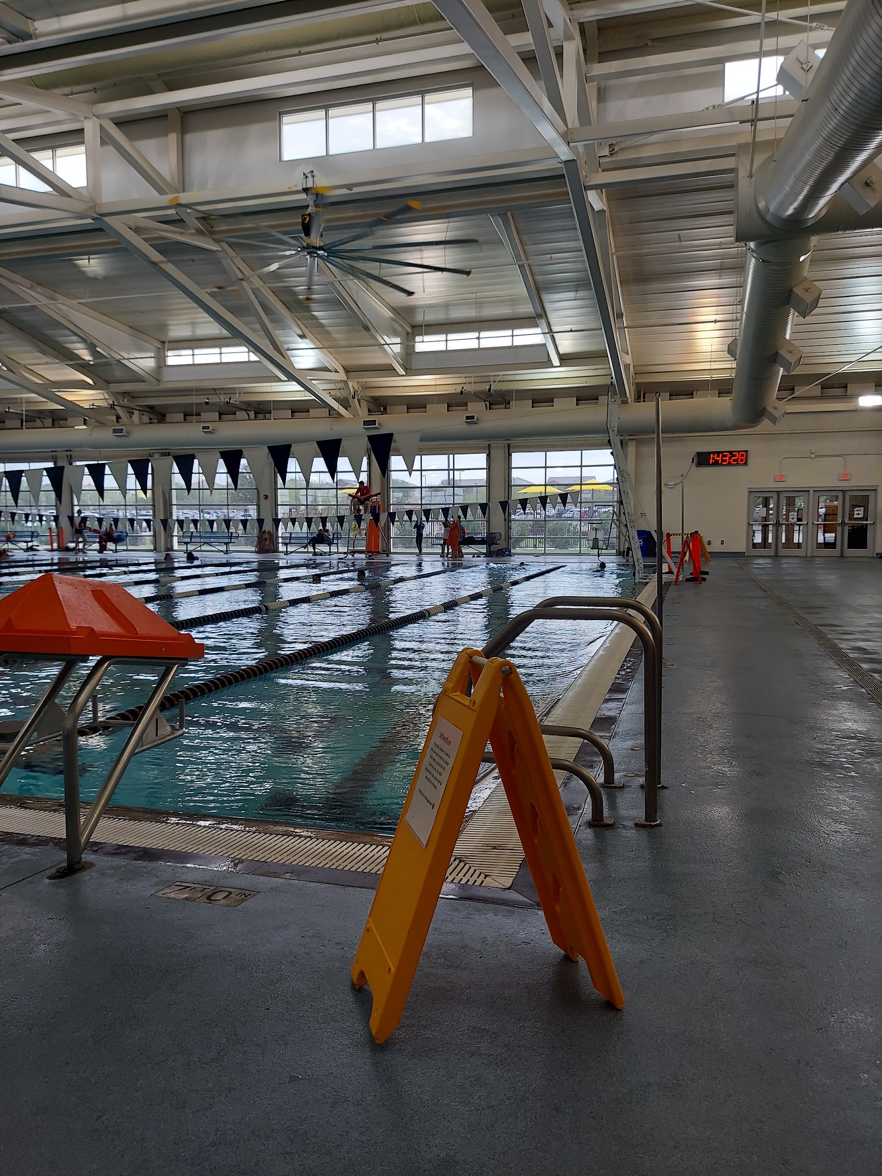 Another great public pool within the Clark County system. This one shares the same huge parking lot as Wet and Wild Park. Best to reserve online, handy during COVID19. Well maintained 10 lanes indoor lap lanes (25yards). Free WiFi in all country facilities. Nice touches : 2 gigantic fans above pool for cooling and ventilation. Garage doors rolled up around pool also improves air. Narrow ledge along the walls inside the pool helps to get out of pool easier.