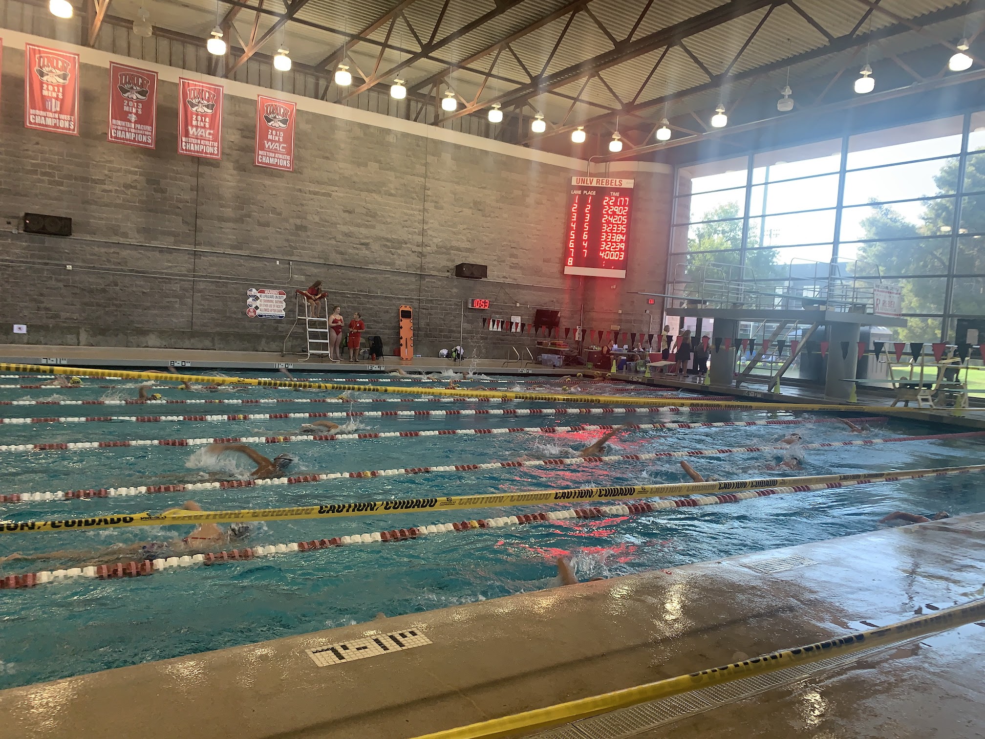 What are people saying (AI review summary)? Reviews cover two UNLV aquatic facilities: the Student Recreation and Wellness Center pool and Buchanan Natatorium. The Student Recreation pool is highly praised for its cleanliness, modern facilities, friendly staff, and pleasant environment for swimming workouts; visitors are advised to use the Tropicana Garage drop-off and have a $10 fee and ID ready. Buchanan Natatorium is described as an excellent pool for competitions, featuring a separate diving well with 1m and 3m springboards, and offering good views of the Strip. Recent improvements include a fixed sound system and a men's room remodel. The diving club and coaches are noted for their hospitality. However, Buchanan Natatorium has limited quality seating for large audiences, and there's conflicting information regarding the presence of diving boards, with some reports from the help desk contradicting visual evidence and other reviews.