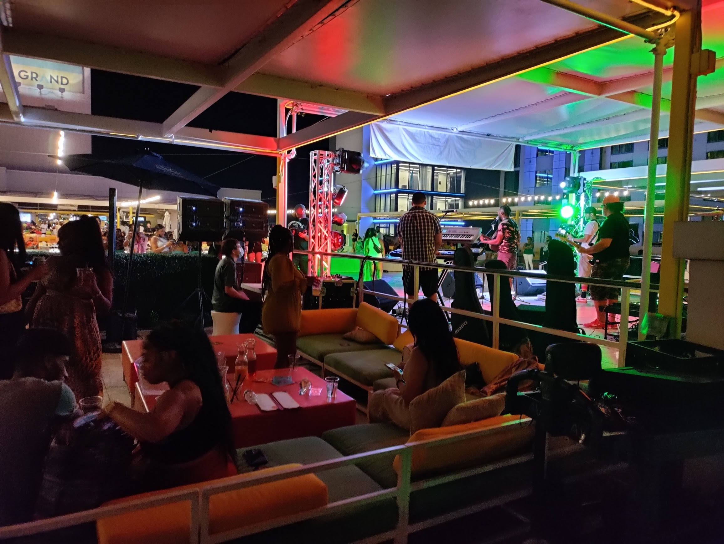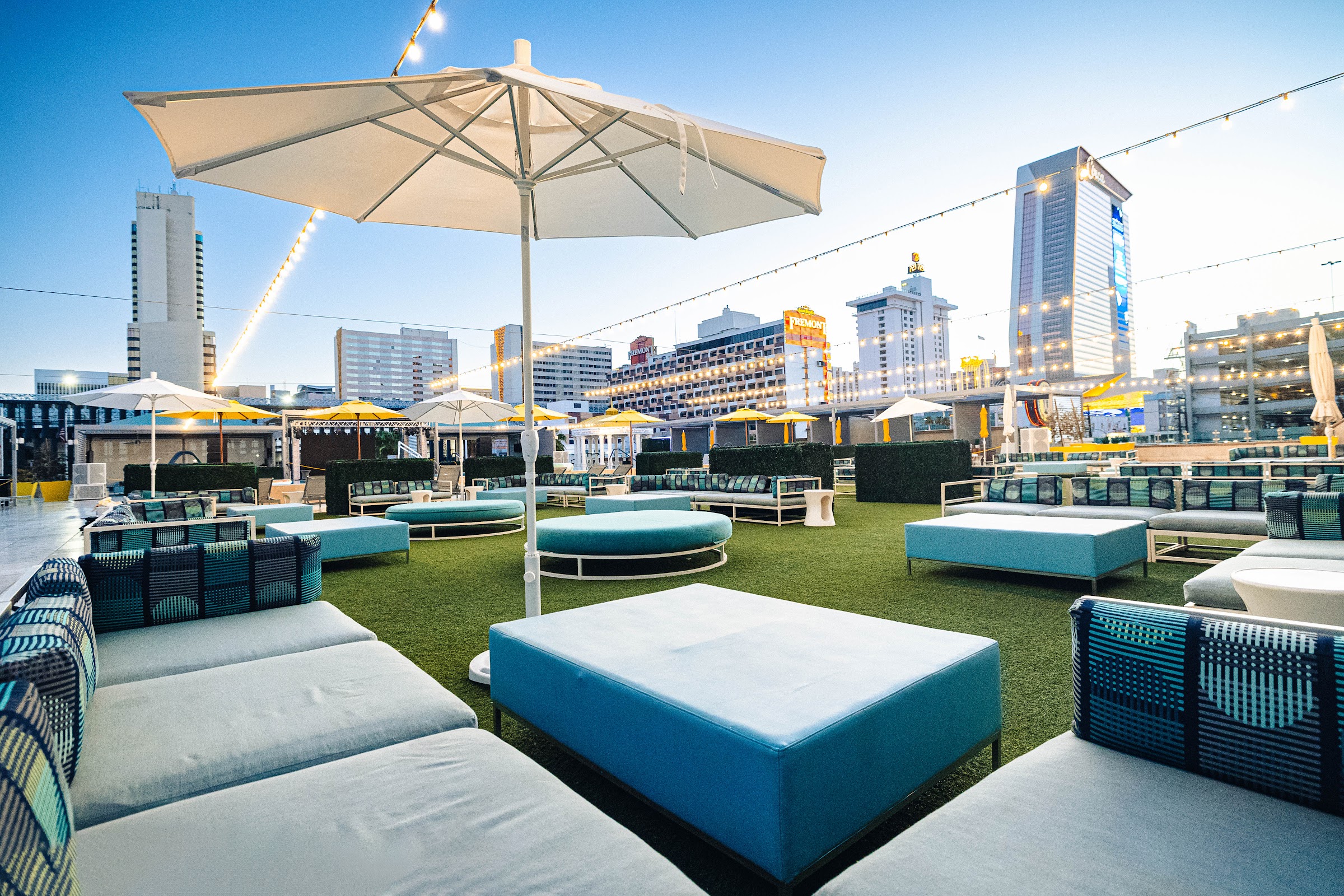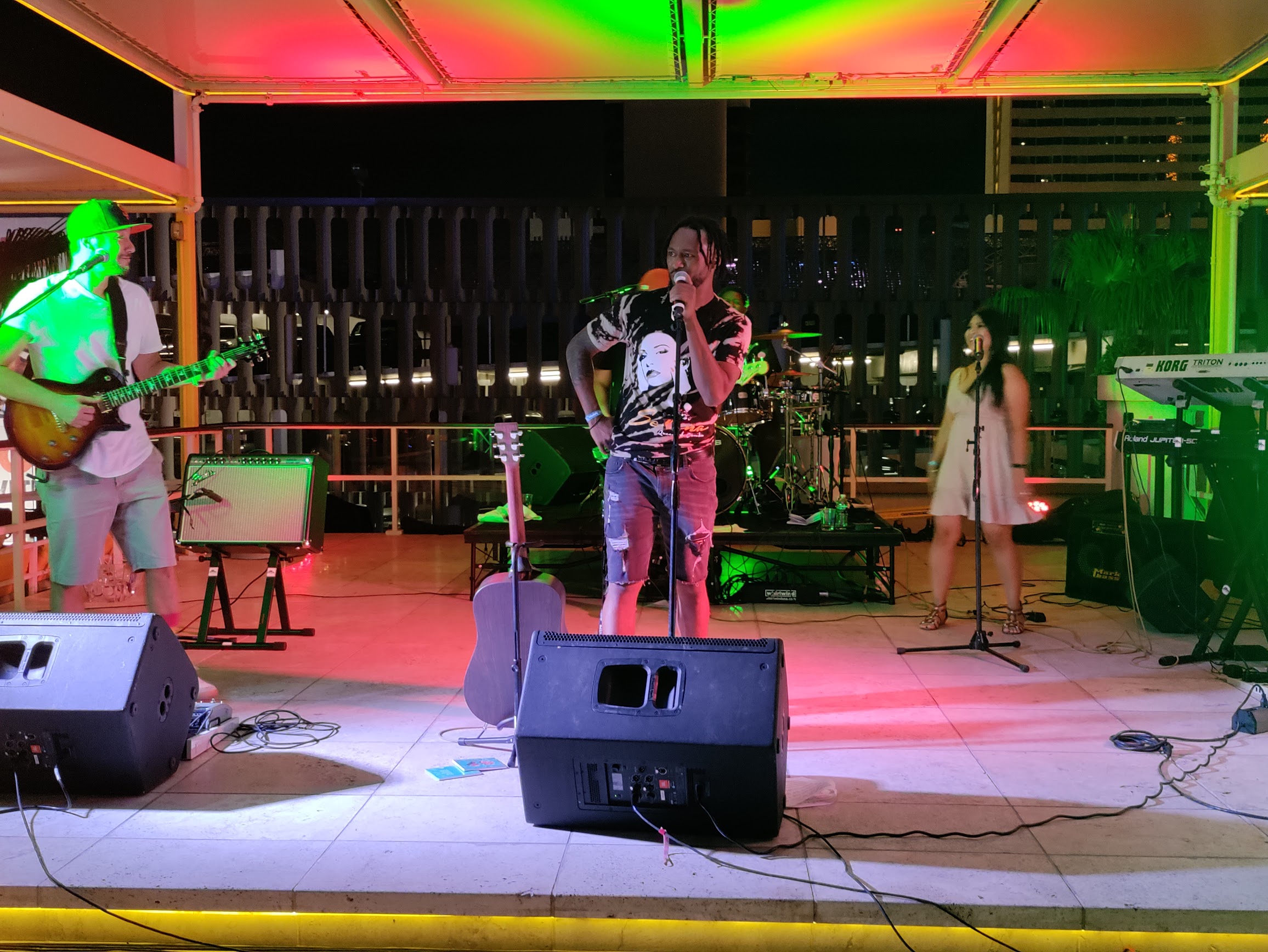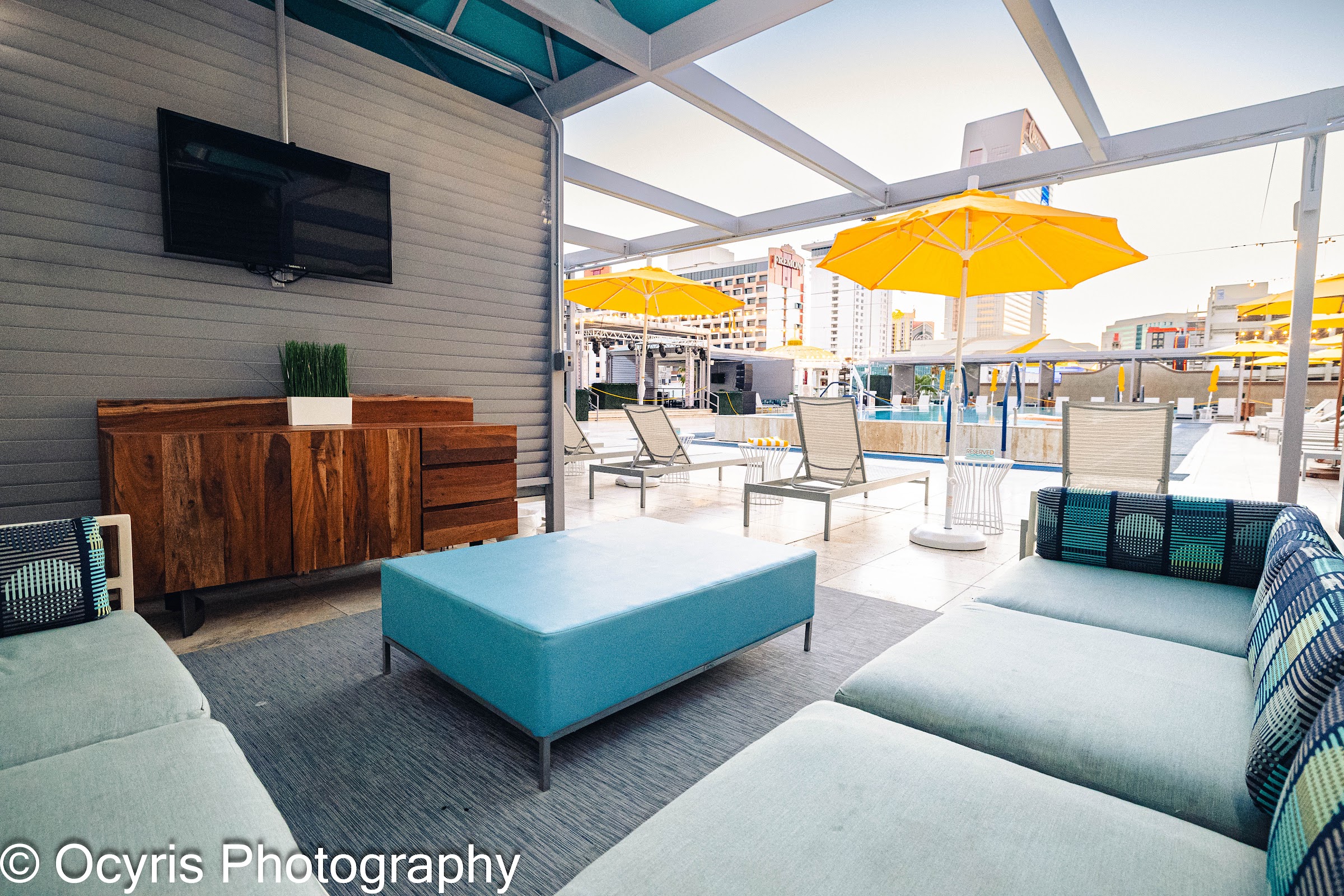 The weather on this Friday night was beautiful and the views of Downtown Las Vegas were great. There are cabanas and seating available. On this Friday evening, there was a live R & B Band.