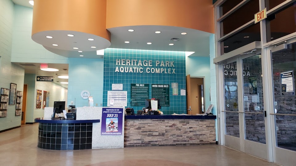 What are people saying (AI review summary)? The Heritage Park Aquatic Complex is highly praised for its beautiful, LEED-certified building, ample parking, and welcoming atmosphere. It features two indoor pools: a competitive/lap pool with fourteen 25-yard lanes and depths up to 13 feet, including high diving boards, and a shallower pool. The facility is noted for having better air conditioning than other local pools. Visitors highly recommend the aquatics classes and children's swimming lessons, commending the excellent, patient, and attentive staff, with coach August specifically highlighted. Numerous activities are available throughout the day. Overall, experiences are described as fun, great, and peaceful, though visitors are advised to bring water, and there's a daily brief closure for lifeguard testing.