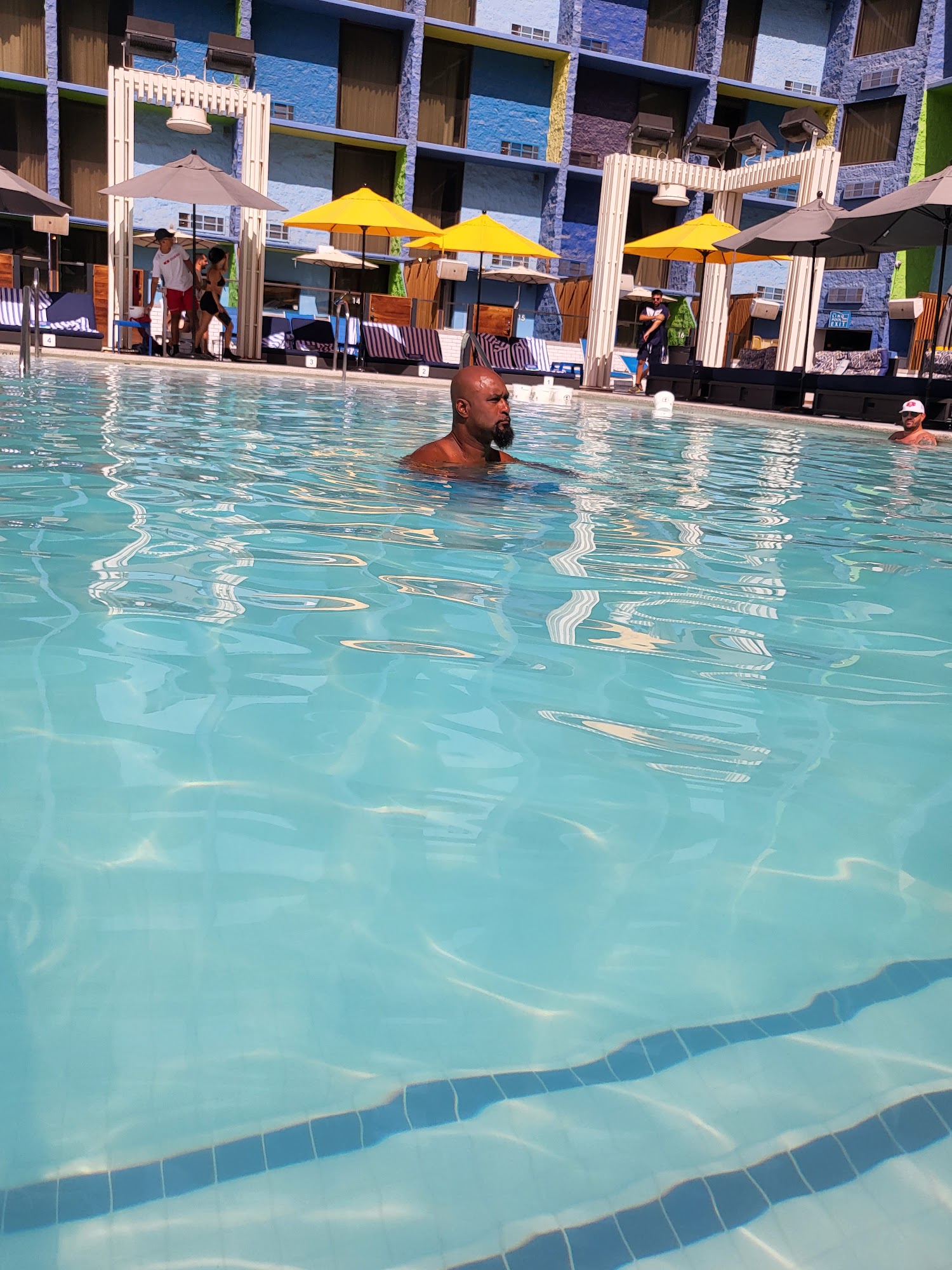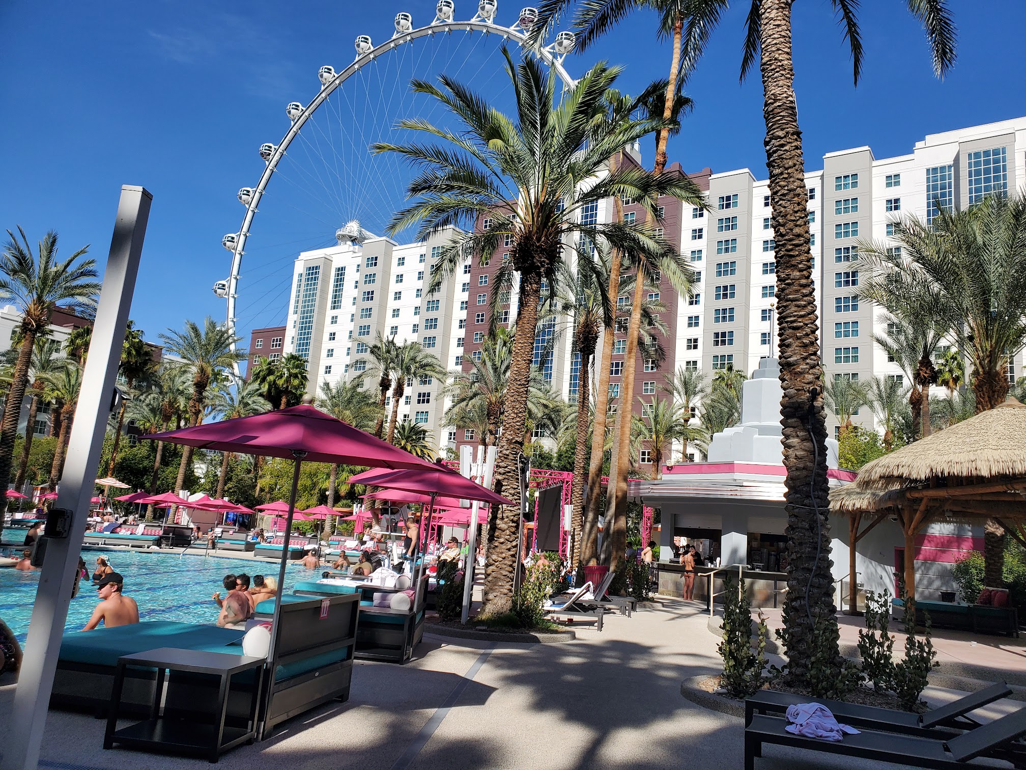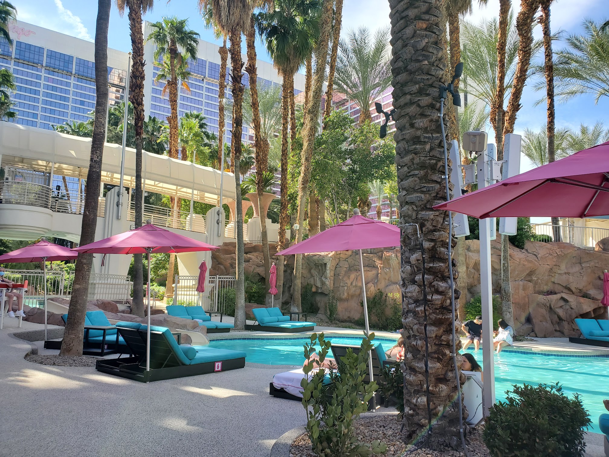 Not a lot of free chairs and the pool was quite small. The Vegas sun is nice and hot and the pool was refreshing but fairly crowded. No outside food or drink allowed inside (water is allowed) and you need your ID to get in.