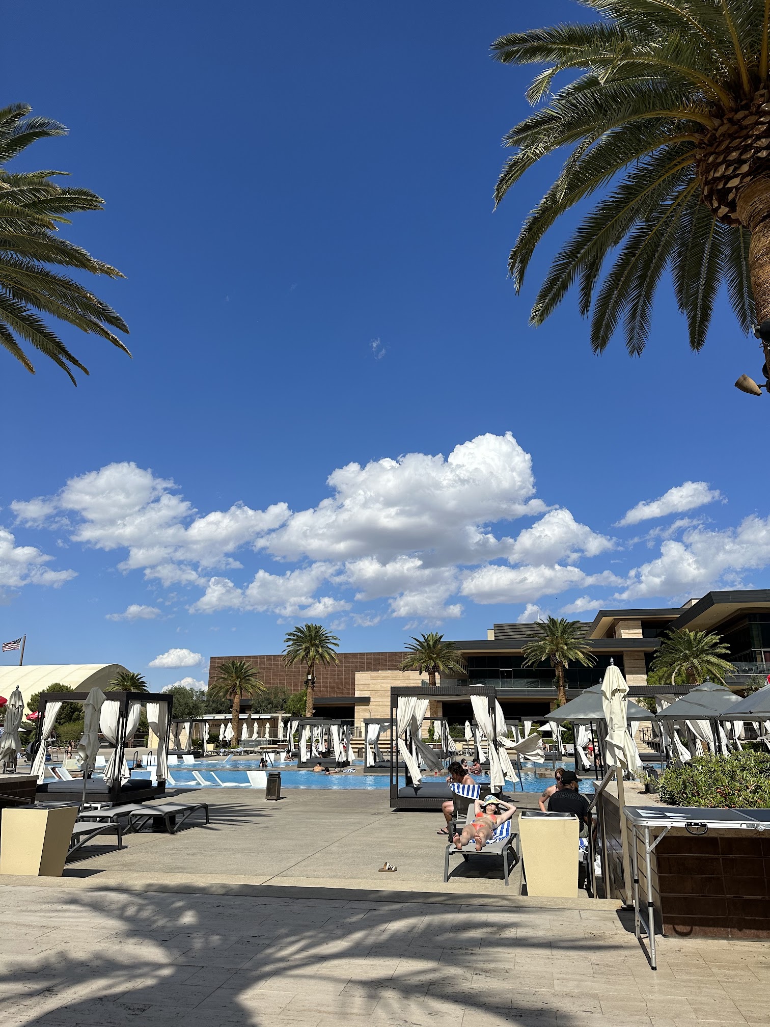 M Pool is the expansive and vibrant pool deck located at the M Resort Spa Casino in Henderson, NV. It features multiple distinct swimming pools, including a large main resort pool and the adult-only DayDream Pool Club, along with hot tubs, private cabanas, daybeds, and poolside food and beverage service. The atmosphere is generally lively, often enhanced by live DJs and events, catering to both families and adults looking for a relaxing or entertaining experience.