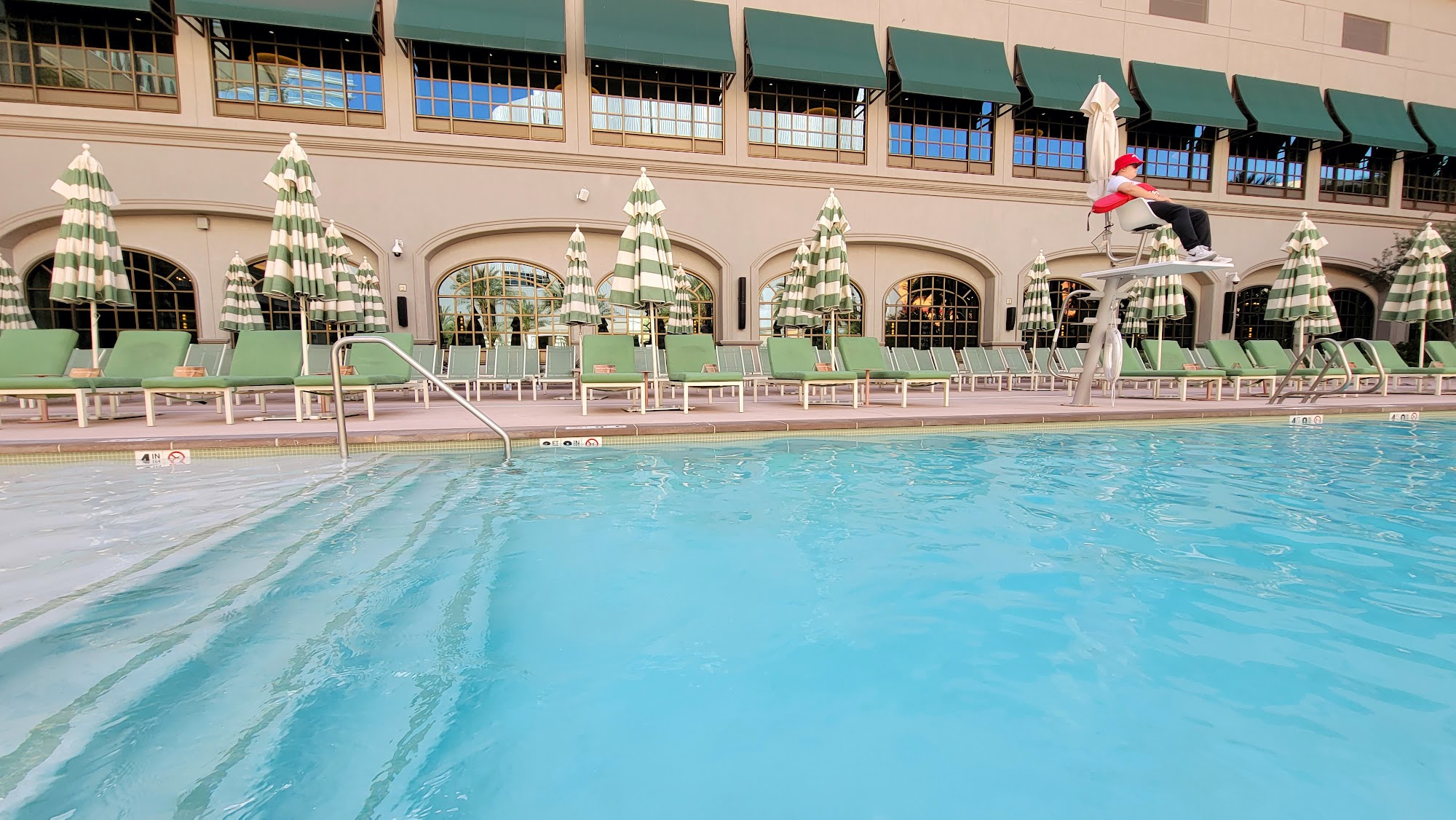 There are 3 pools and they were all clean. Plenty of chairs to go around. Quiet and relaxing for the most part. Not a pool party atmosphere. Drinks were very expensive. Bartenders were nice. Water was chilly. They closed at 6pm, which was very disappointing after being in work meetings until 5 pm each day.