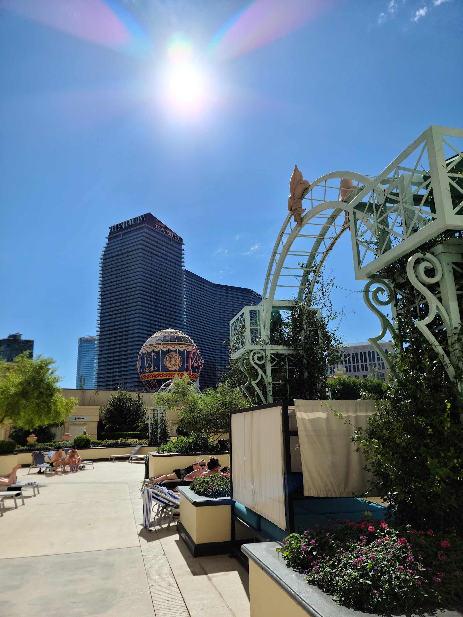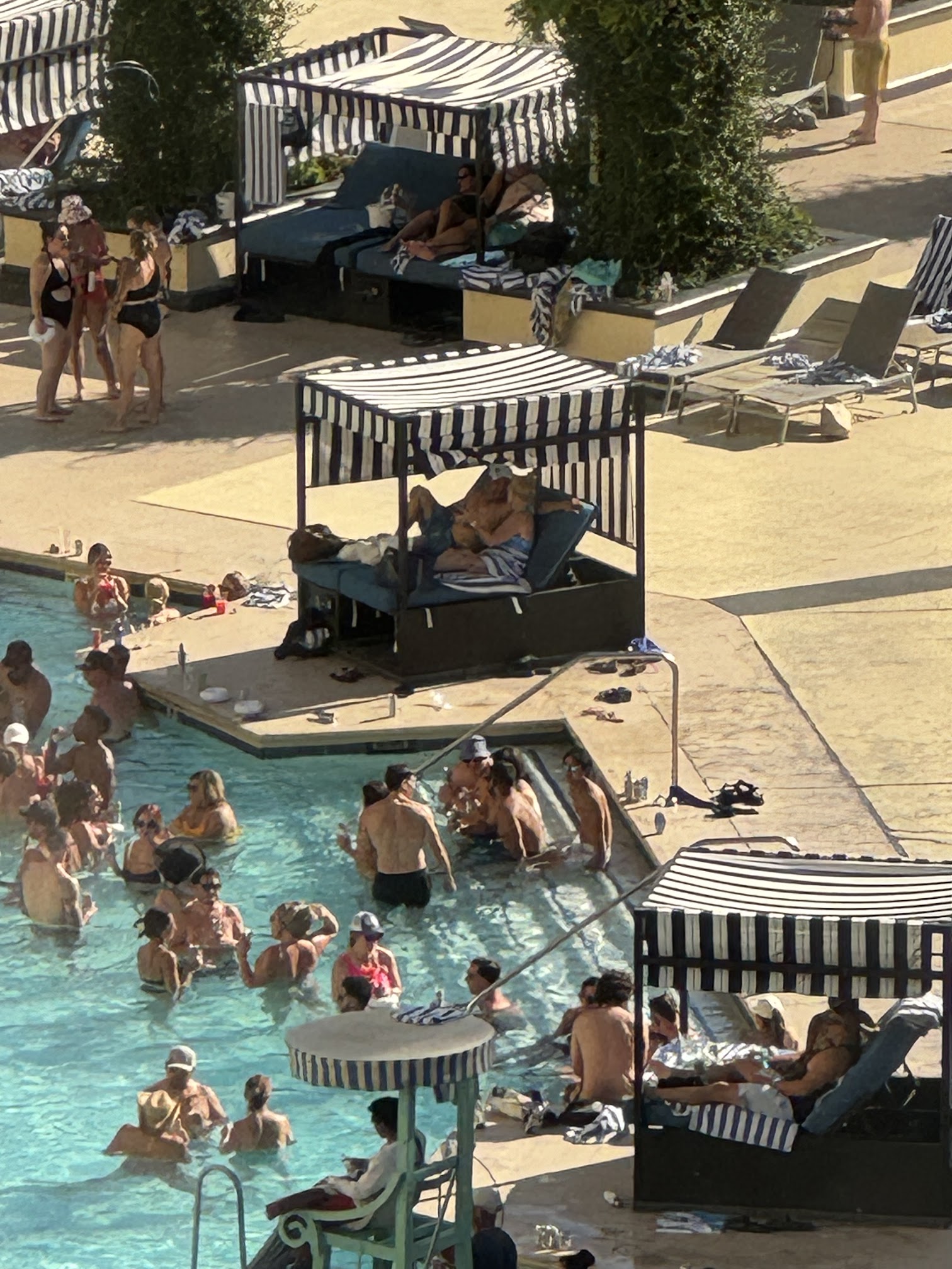 We chose this pool because we were staying at Horseshoe and there's was closed so this was the next closest. It's a smaller pool but that wasn't the issue. The water was WAY too warm! It felt more like bath water. Also, the vibes just weren't there. We're in our late 30s and I felt like this is a spot more for people in their 50s and 60s who like to swim in warm water. The service was great- the check in staff and the waitress were both very professional and attentive but I feel like 3 stars is a fair rating given that the pool should account for the majority of the rating and it really wasn't to my liking at all. Having a view of the Eiffel tower and the strip was nice and our daybed was fine but overall, It wasn't a good fit for us and we would check out another pool on our next trip.
