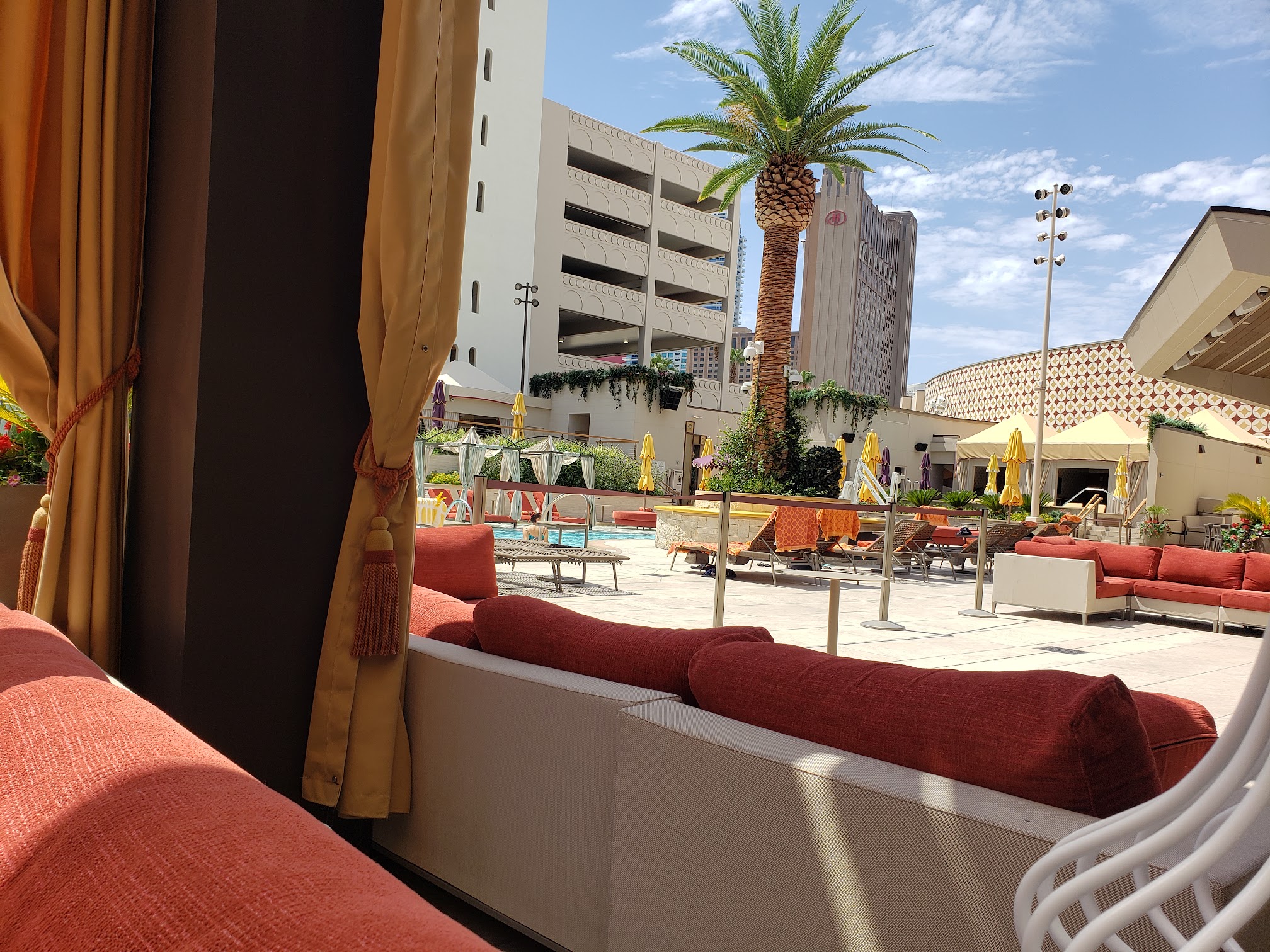 Retro Pool is a distinct pool experience at the Fontainebleau Las Vegas, offering a stylish, laid-back, yet energetic dayclub atmosphere with a vintage, retro theme. Guests can enjoy DJs, cabanas, and daybeds in a sophisticated setting.