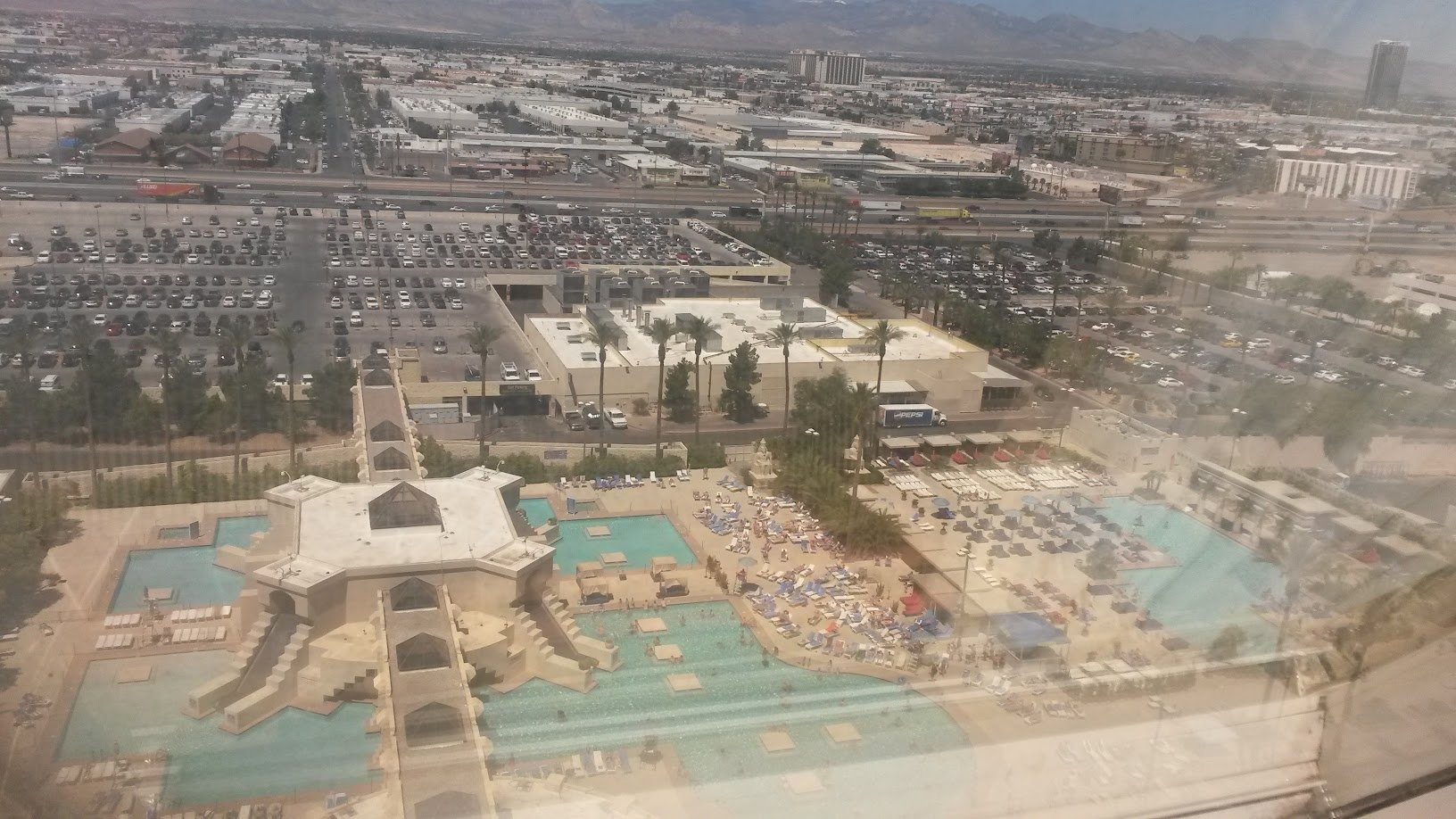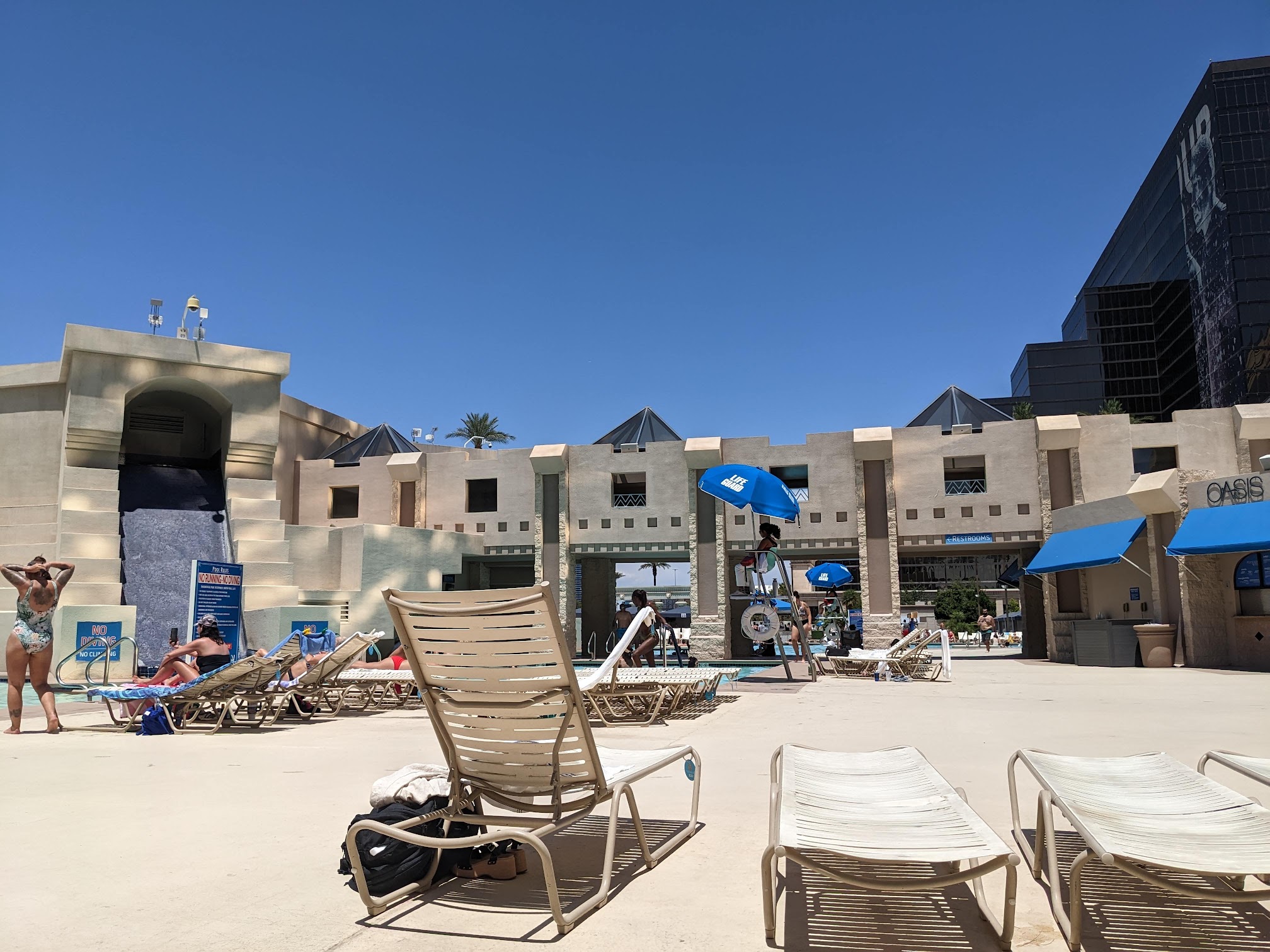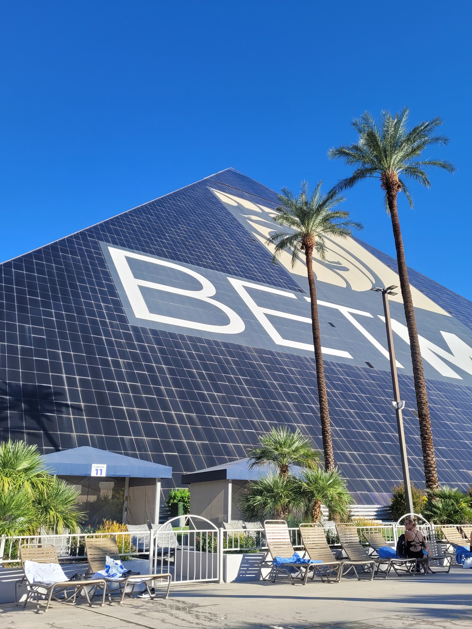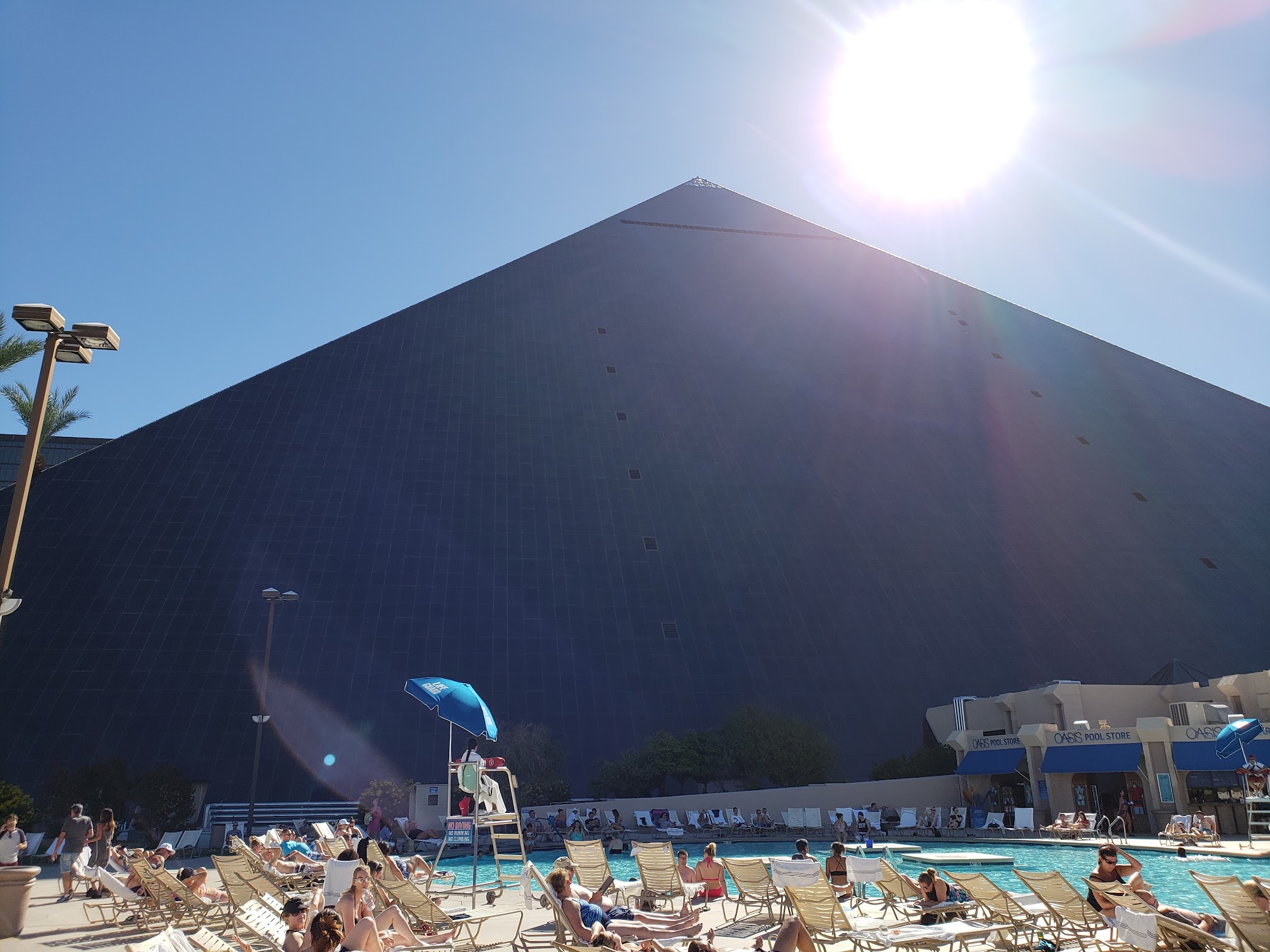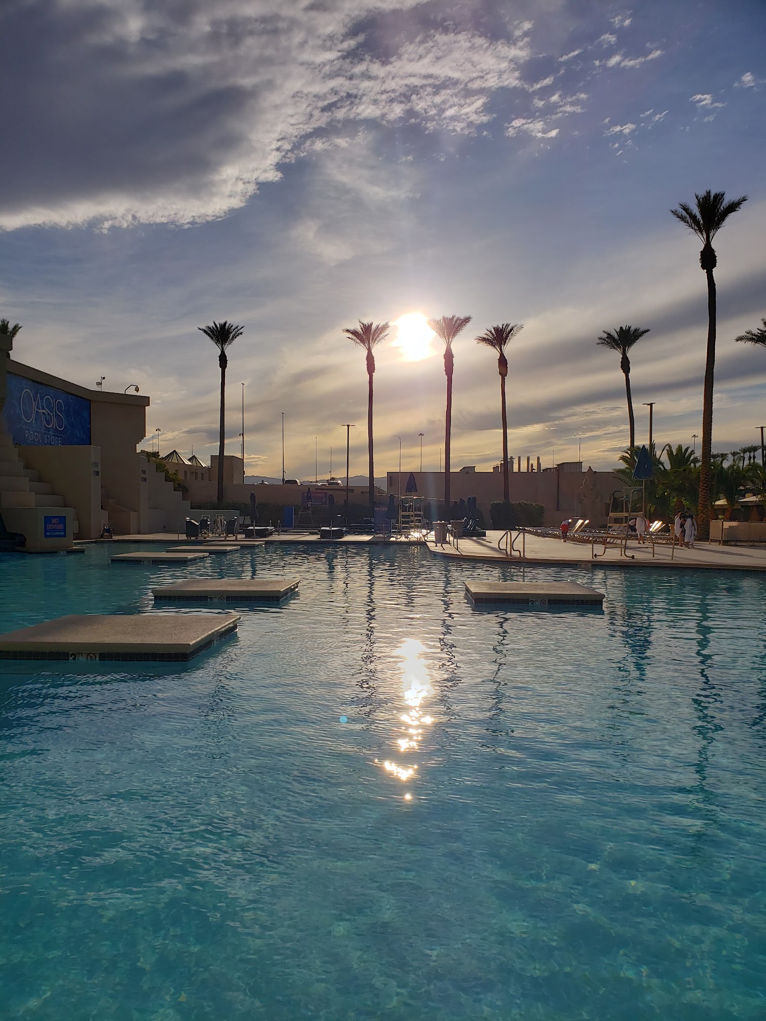 i don't regret checking out and swimming in this pool. it's huge, literally. there's some little fountain like decor near the deepest part (which was only 3 feet 6 inches deep) which added to the ancient egypt inspiration for luxor in general. i would give this a 5 star rating if the water wasn't filled with garbage. but under the sun, it looks really pretty! it gives this nice light blue reflection with the sunlight. i would give this pool one more go. i only went swimming in this pool twice during my stay here.
