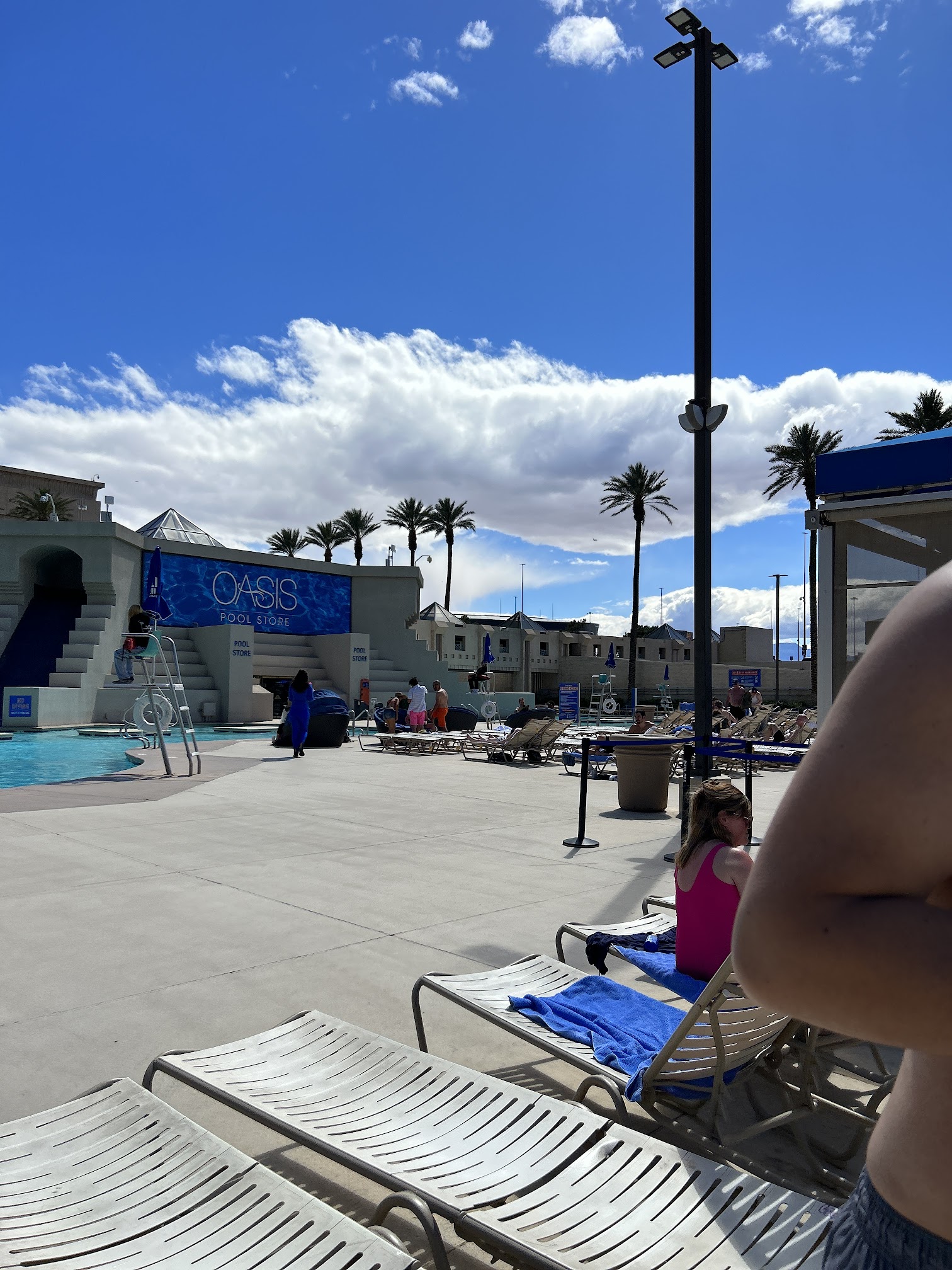 I visited the Oasis Pool at the Luxor for a Sunday pool party, and it was such a great experience! While there’s a cover charge if you’re not a hotel guest, I found it to be well worth it. The pool itself is a great size, and I loved the theming and layout of the area—it’s visually appealing and creates a fun, relaxing vibe. The DJ was excellent, playing a mix that kept the energy up without being overwhelming, and there were multiple bars and servers circulating with drinks, which made it easy to enjoy the party without waiting around. As expected in Vegas, drink prices are on the higher end, but that’s to be expected. What I appreciated most was that they offered free towels and complimentary lounge chairs, alongside paid options like premium chairs and bali beds—so there’s something for everyone, whether you’re looking to splurge or keep it simple. The service throughout was great, and the overall experience was fun, well-organized, and comfortable. I’d definitely return and would recommend it to anyone looking to enjoy a solid pool party in Vegas.