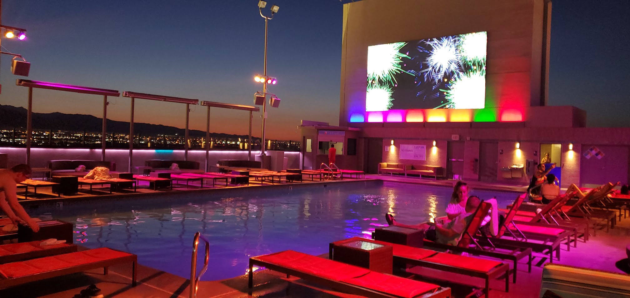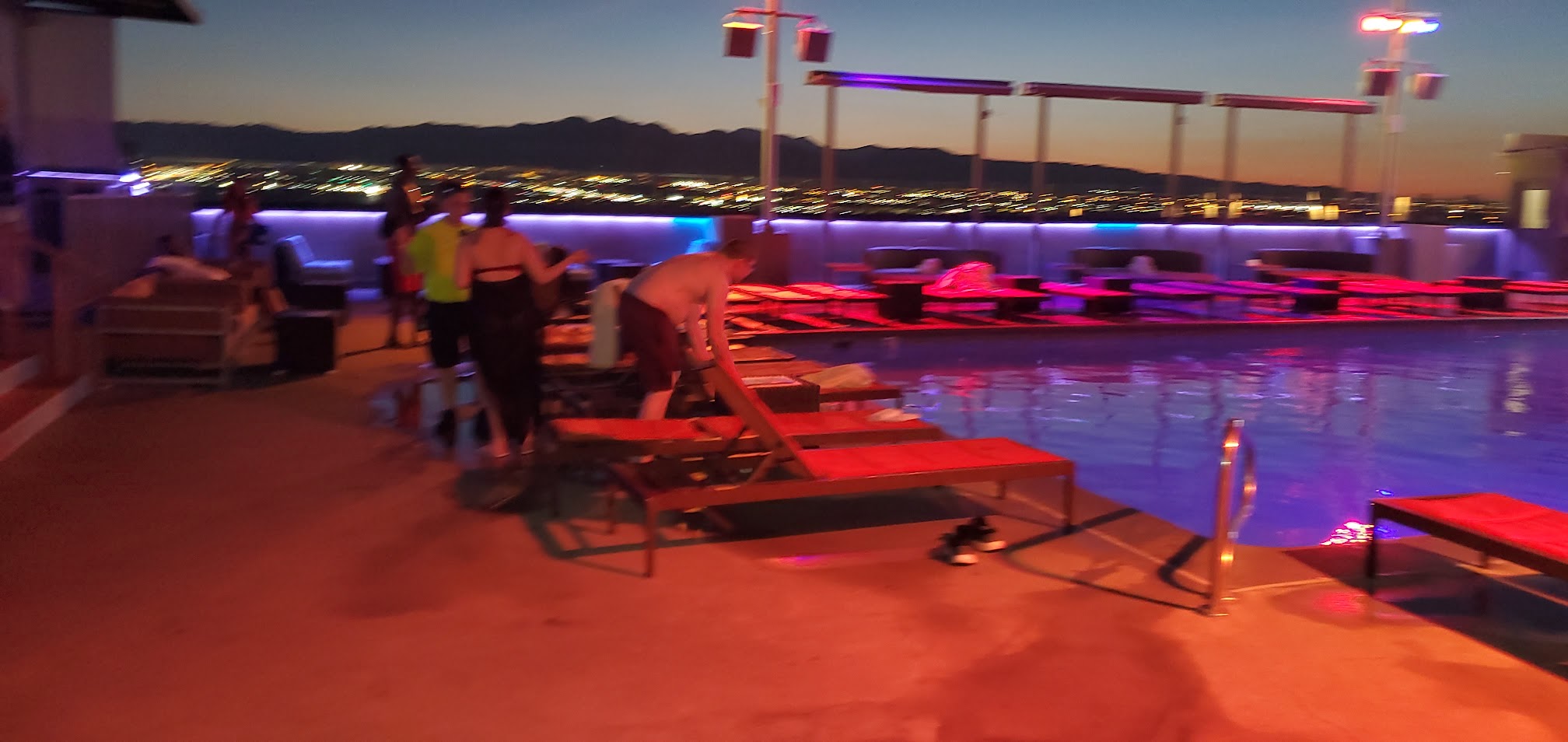 What are people saying (AI review summary)? This venue offers an intimate and uncrowded atmosphere, often described as clothing-optional with a strict no-camera policy, though operating hours can be weather-dependent. Guest experiences regarding staff are mixed: some praise friendly, attentive service (notably at the Radius Lounge with good happy hour deals and specific bartenders/servers), while others report inattentive and unfriendly staff, coupled with a mandatory two-drink minimum. The pool is generally seen as a basic rectangle, lacking shade, and needing maintenance. While views are mentioned as a positive, they can be obstructed by non-transparent glass. Overall, it's considered a decent option for those staying at the Strat.
