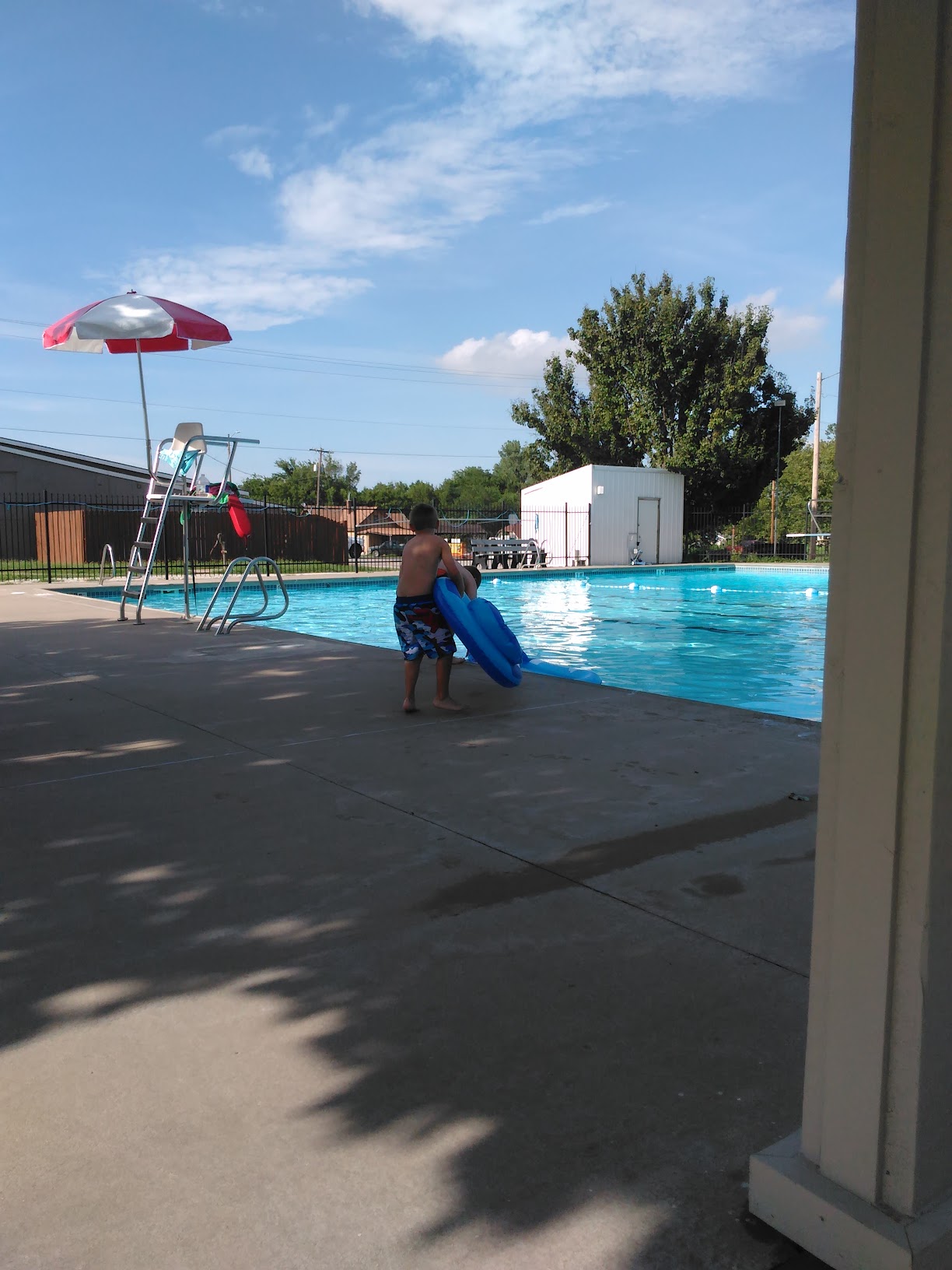 Nice little pool, kids love going. Has a gradual entry and a diving board, nothing fancy but great place to cool off and play on a hot day. Very cheap to get in and nice concession stand. They also have a large container of different size life jackets and floaties along with goggles and toys. Staff are well trained, very friendly, and all around amazing. The guards even get in and play with the kids on their down time.