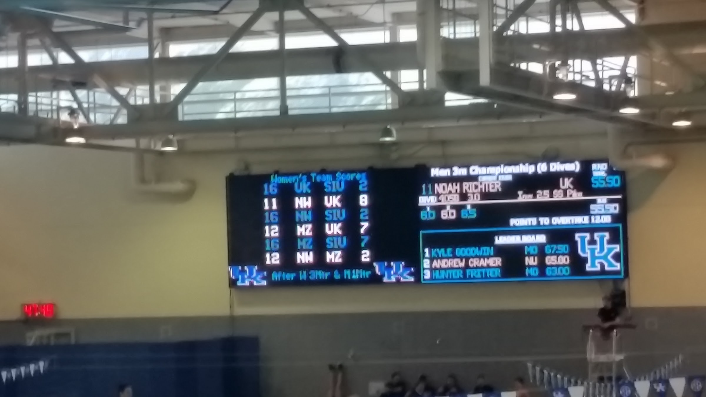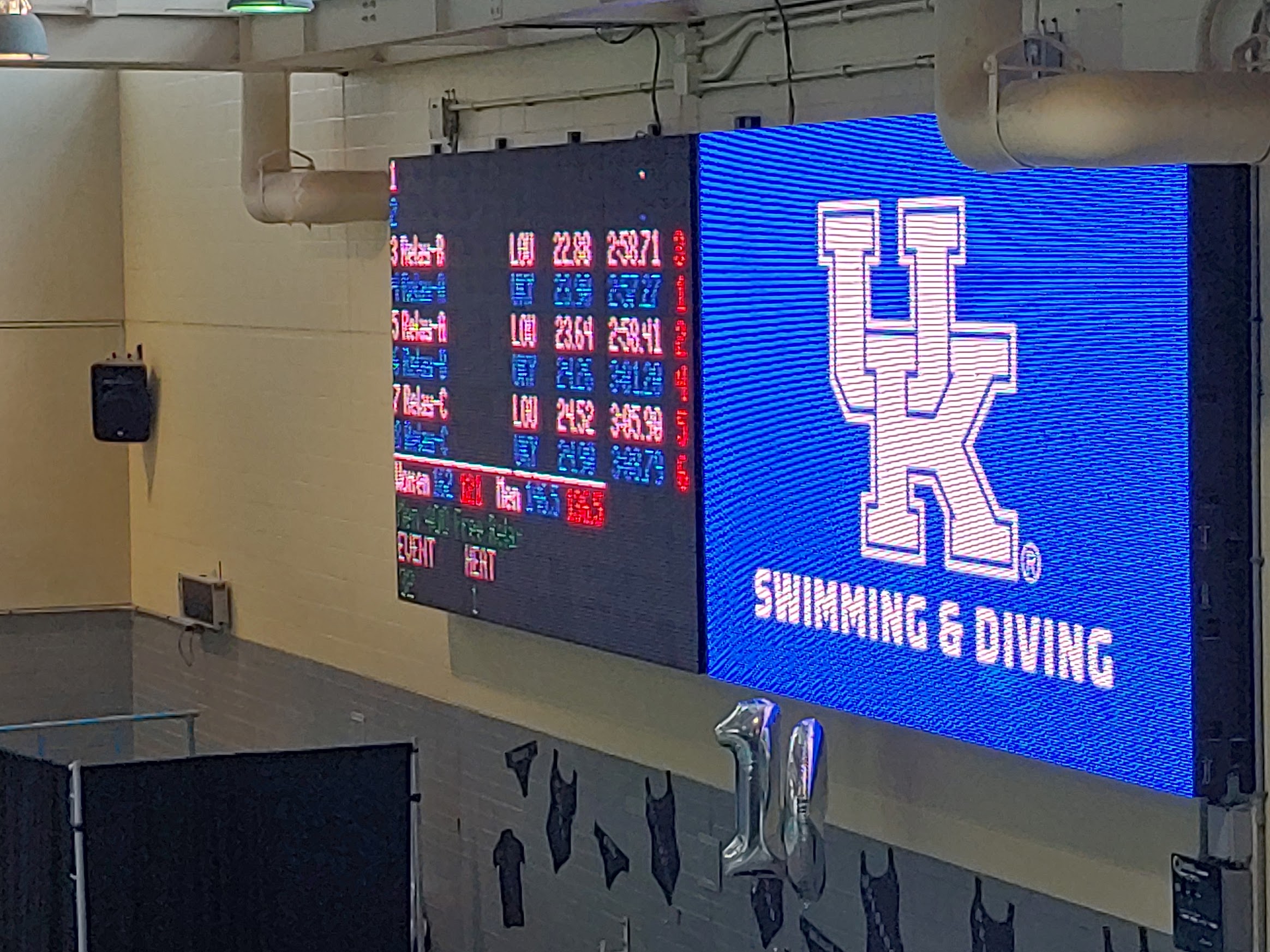 This is the worst pool in division one that we have visited so far. They certainly need a new custodial staff to say the least. The overall design just isn't as nice as others. The score board is a little confusing and not as clear as others. The seats are very roomy though.