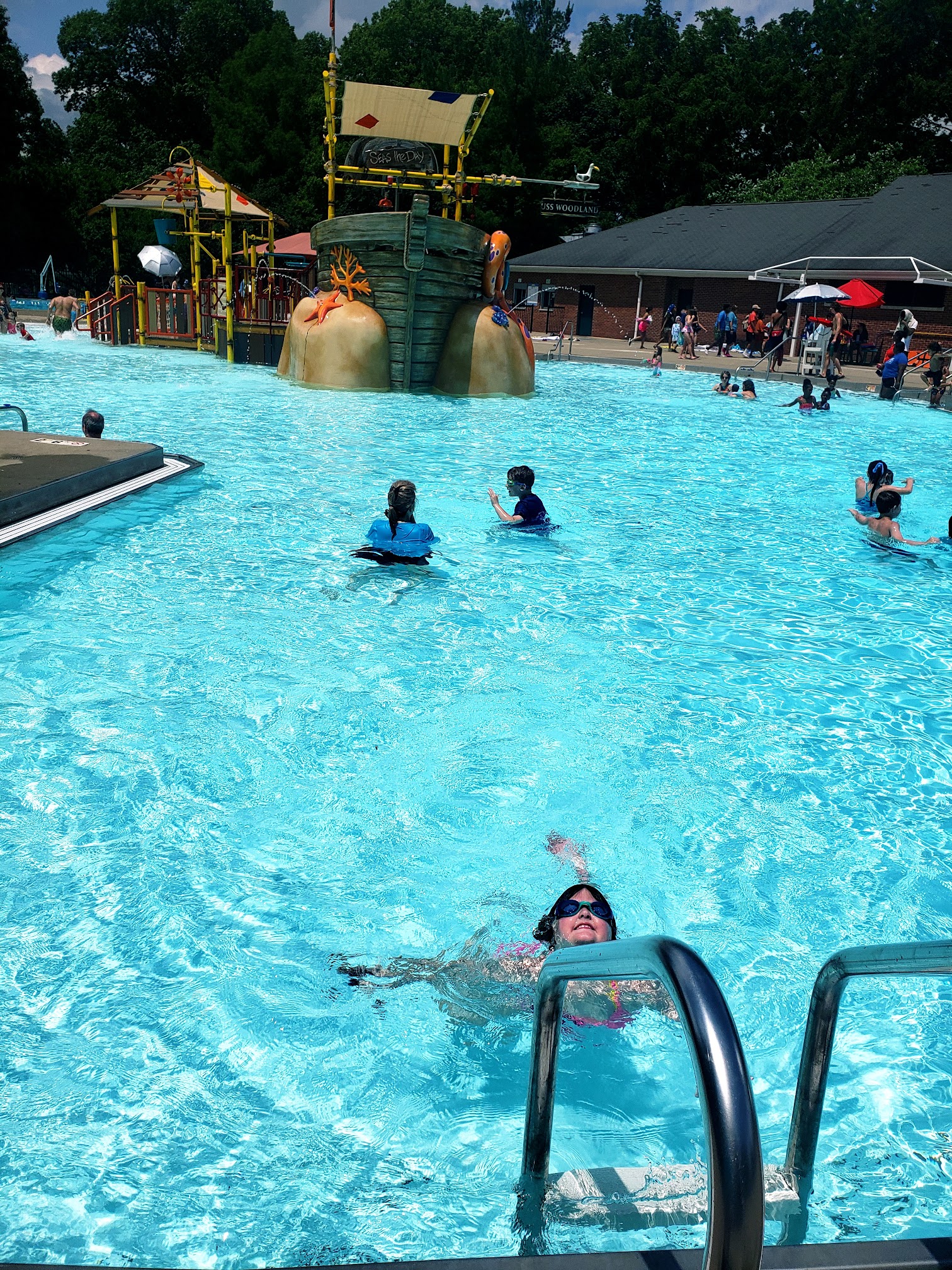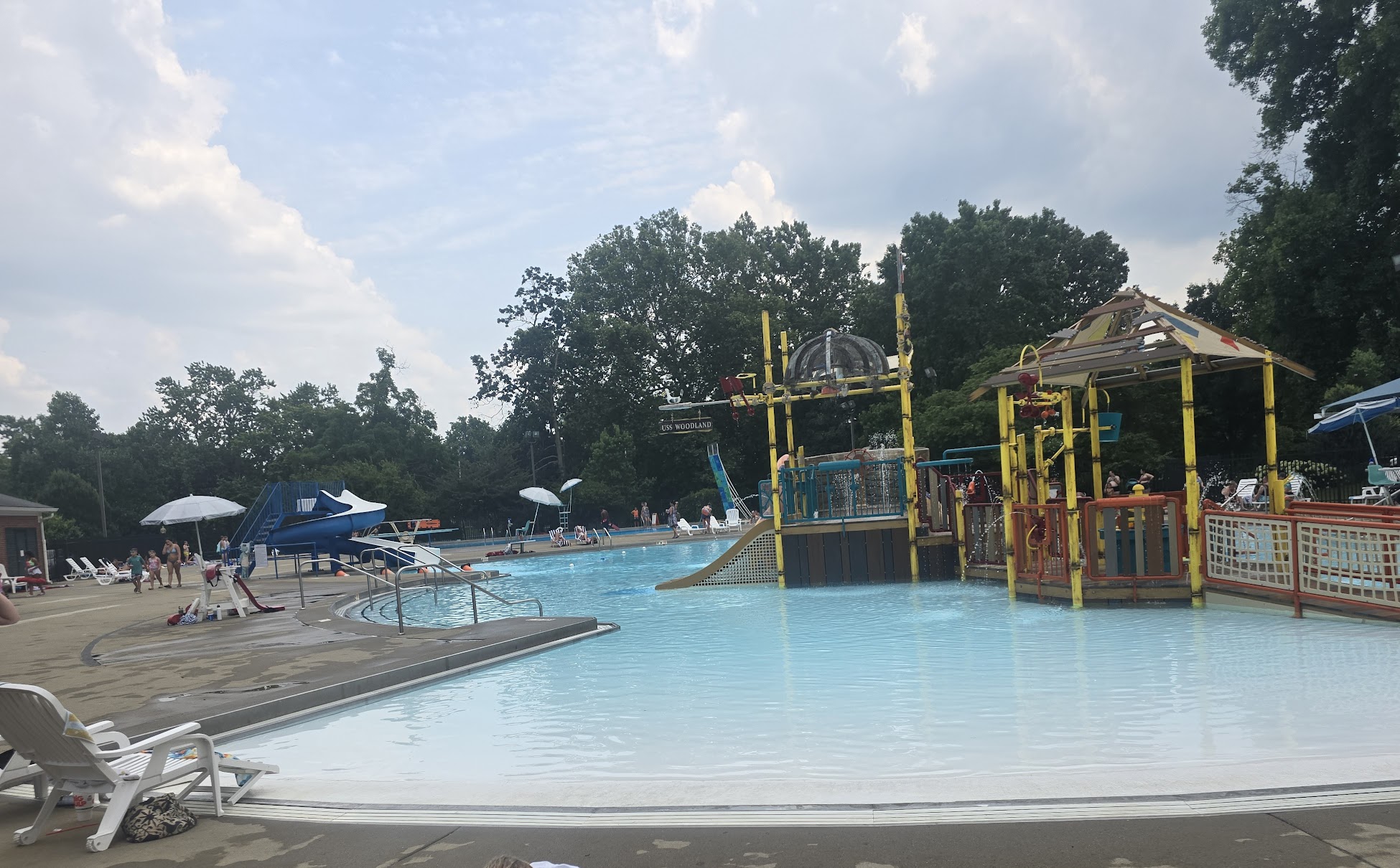 What are people saying (AI review summary)? Reviews for the pool facility are mixed. Positive aspects highlight it as a great place for kids of all ages and swim levels, with attractions like a pirate ship, slides, diving board, and rock wall. Lifeguards are frequently praised for their exceptional attentiveness and quick response in emergencies. The concession stand food, including mini pizzas, burgers, nuggets, and fries, is generally considered solid and tasty. Some visitors enjoyed the pool day, finding the water temperature pleasant and the experience fun, with activities like pickleball also available. However, several significant criticisms were raised. Concerns include the main 11-foot pool being restricted to diving and the climbing wall without clear signage, preventing free swimming. There were complaints about early pool closures, specifically at the Woodland location, attributed to lifeguard shortages, which disappointed families, especially those without alternative transportation. A serious accusation of racial profiling was made by one visitor, who reported police involvement for no reason and labeled the manager and a head worker as racist. Minor annoyances included lifeguards randomly blowing whistles and requiring everyone to exit the pool to cool off, as well as observations of hair and bugs in the water. One positive experience was cut short due to thunder.