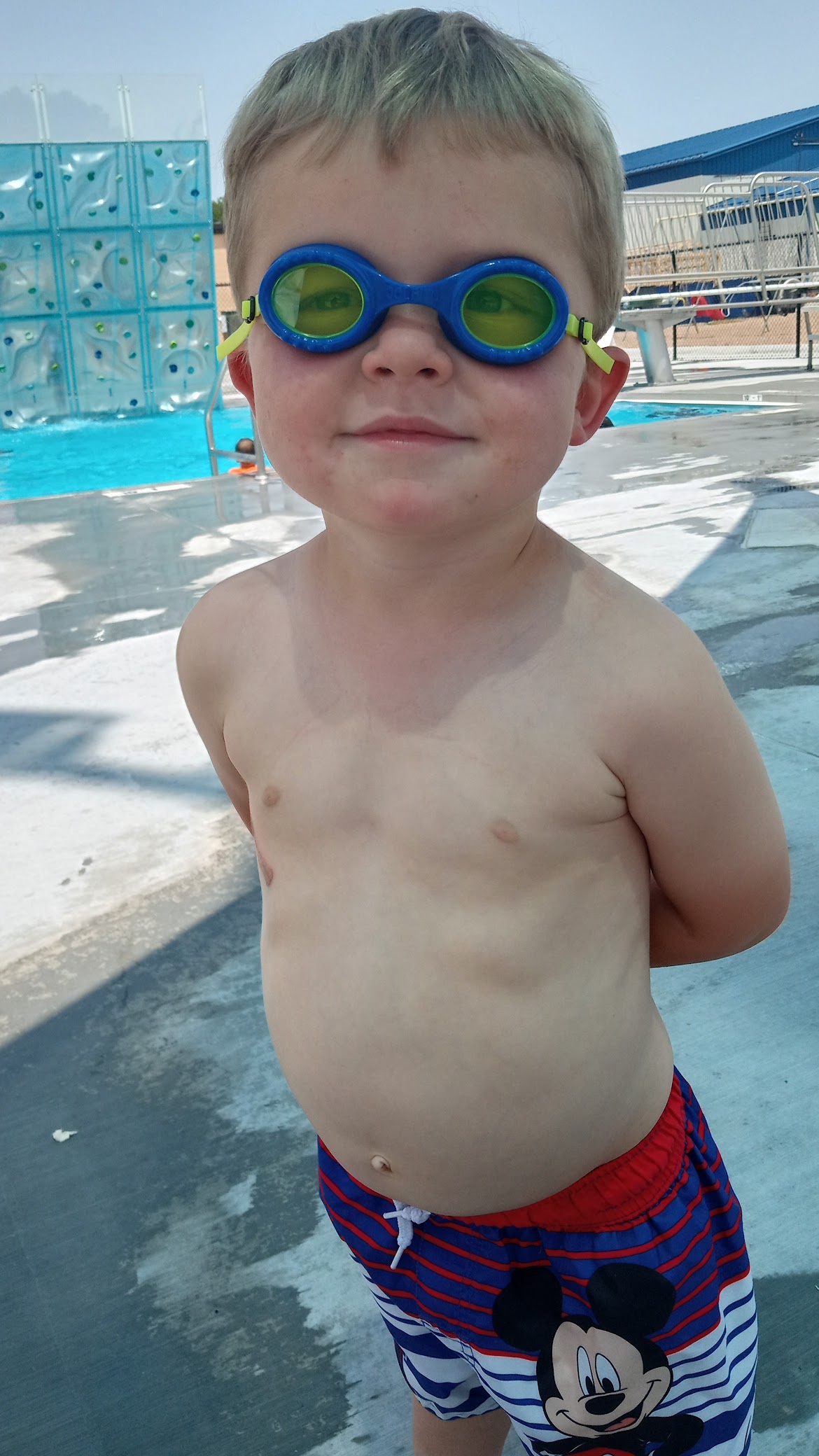 Great little pool. The little slide in the zero grade area is great and the climbing wall in the deep end is unique and super neat! Reasonable price and has puddle jumpers available to borrow. Worth the stop.