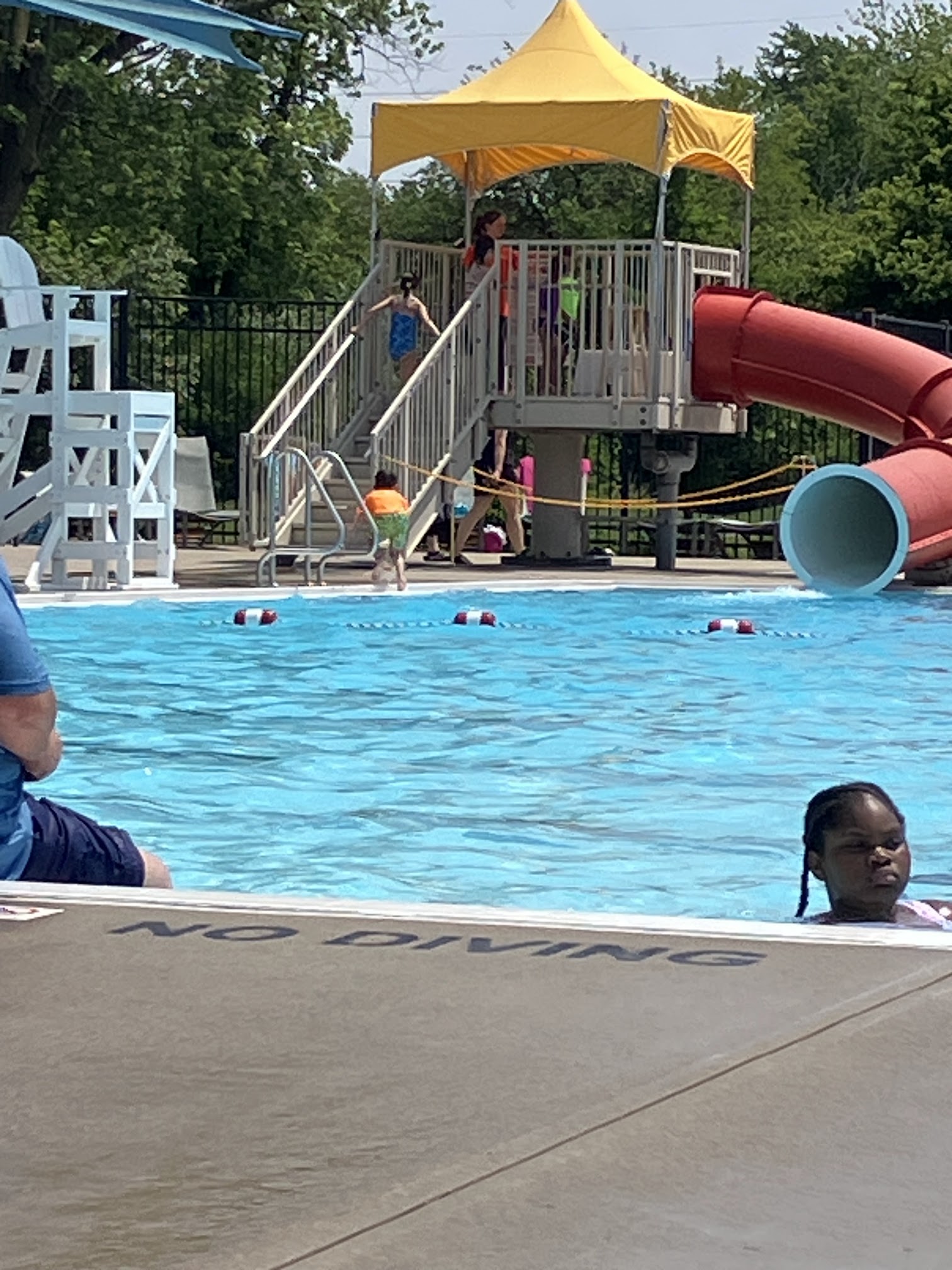 Had a great time, was a little bit busier than usual due to Bloomington Parks & Recreation being there, but other than that, a great place to swim, and have fun, there is a slide which leads you to 12ft deep waters, and the area next to it is 11ft. And a kid area on the side of the main pool areas. Great for a hot summer day!