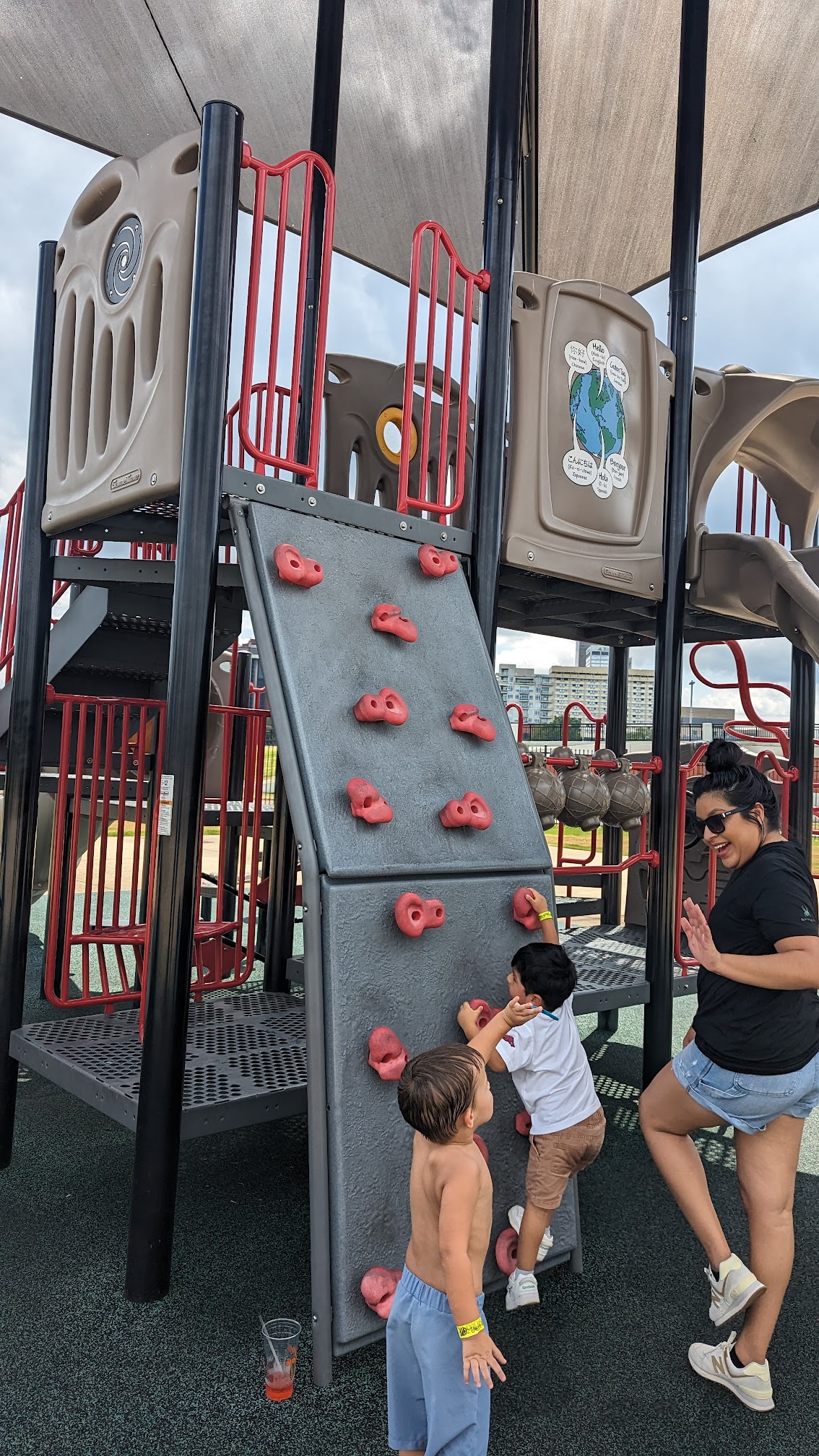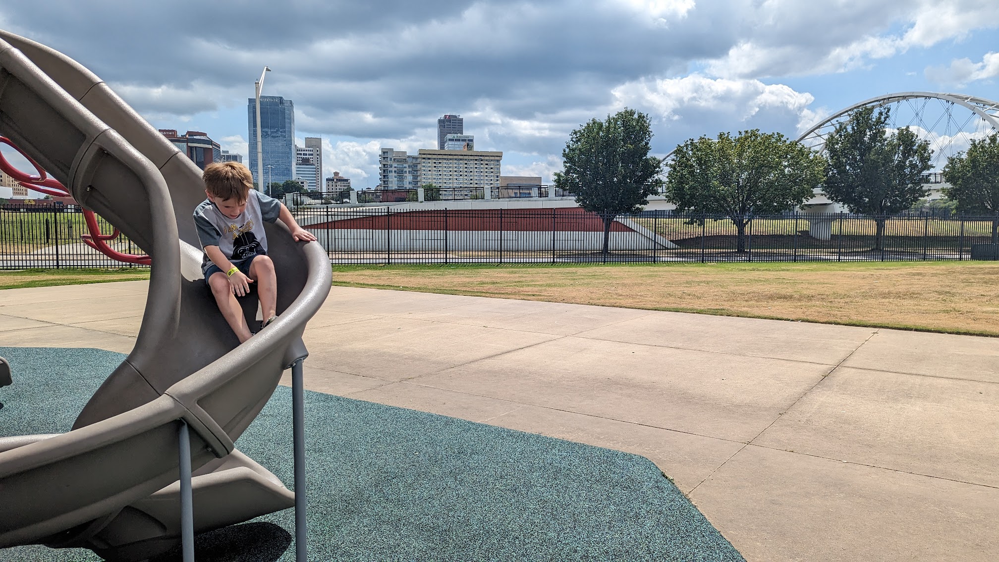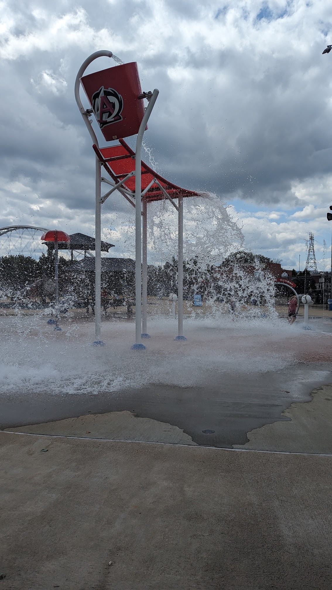 The kids really enjoyed the splash pad and connected playground during the Travs game. It was $5 per kid (on top of your ticket for the game) and adults are free. Everything was clean, the view of downtown Little Rock is amazing, there are plenty of spots for adults to sit in the shade, and a restroom pretty close by. There were also three or four employees keeping an eye out. The one negative is that there is no way for you to pay attention to the game... No TV, no speakers with the radio broadcast, and no easy angle to see the field/scoreboard. If you're coming to pay close attention to the game, it might not be a great option. Also bring full water bottles, as there are no nearby water fountains to refill your drinks.