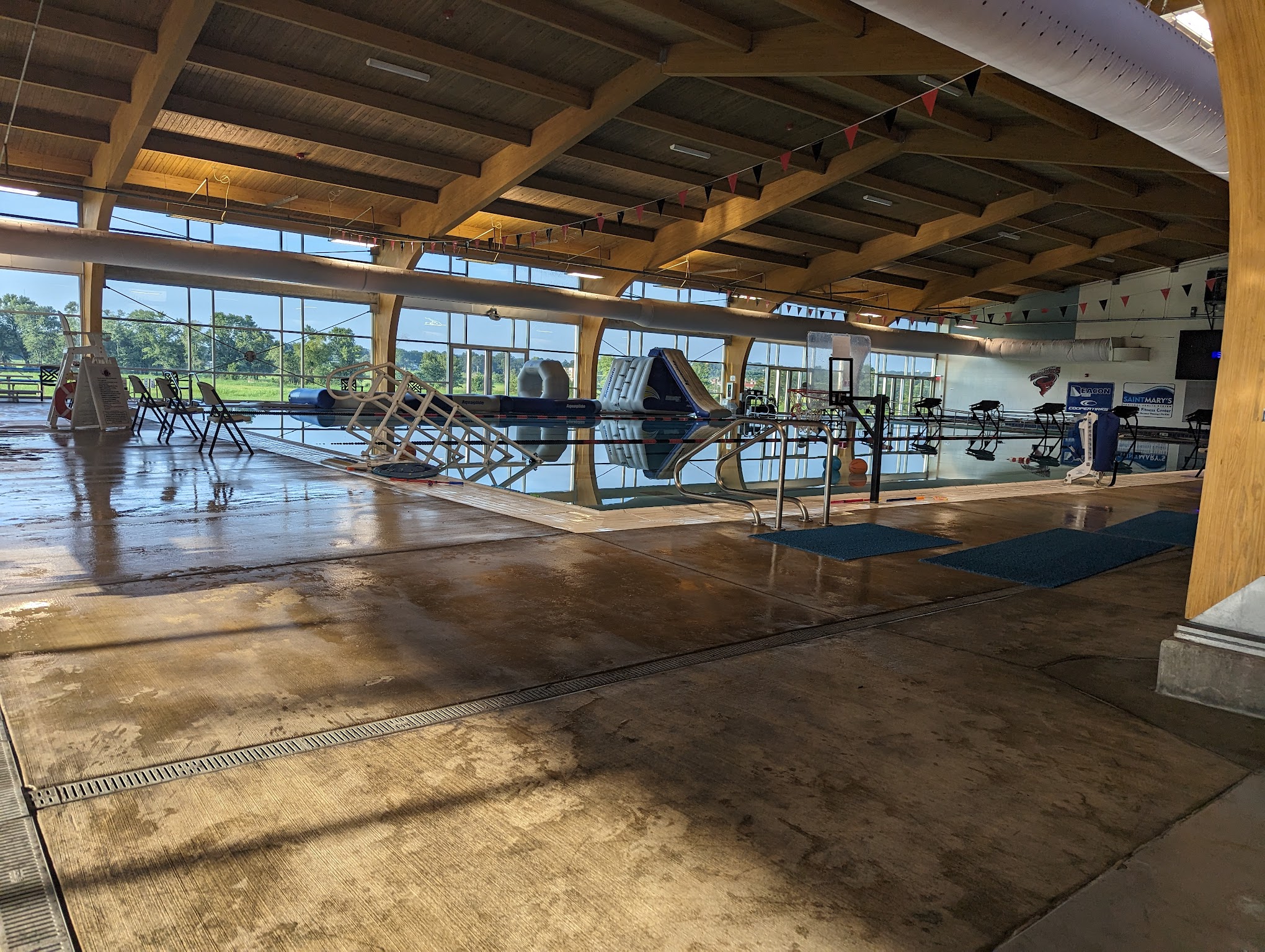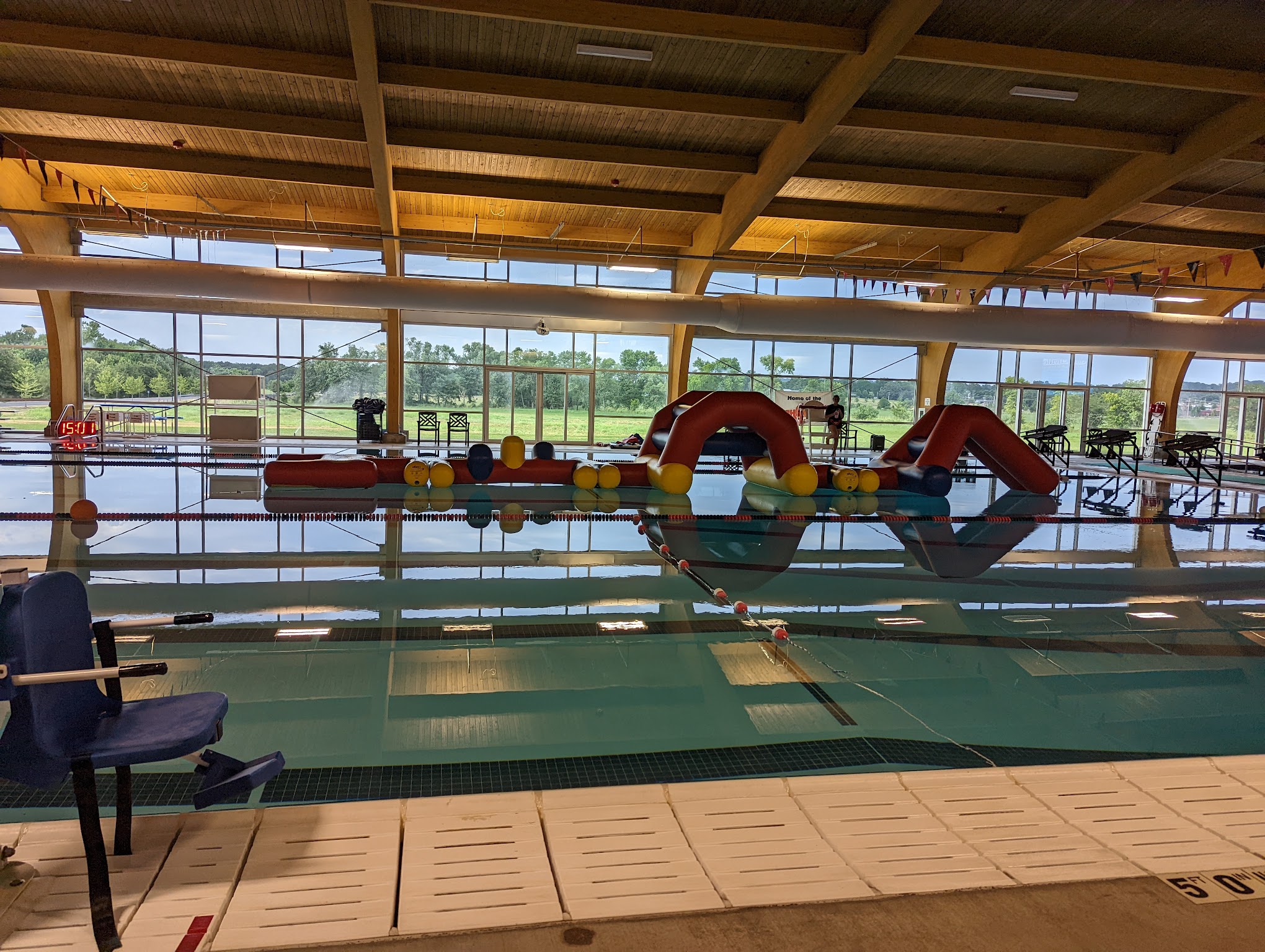 Love the location and the climate control. They need a slide and a shallow end that children are allowed in. They now have a huge floating obstacle course for children, and of course several lifeguards at all times. During the hours that they have the floatation device in the competition pool they still have the diving board accessible and and area for kids to swim and play basketball etc. They keep two lanes open for lap swimming also. The therapy pool provides a heated pool for us older generation people so that the cold water won't make your joint ache. If you are a member you can check out exercise equipment for in the water. Perfect for someone like me that need to exercise in water bc of injuries that don't allow exercise out of water.